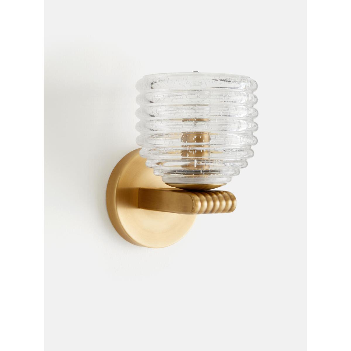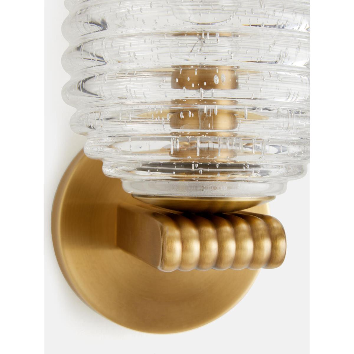The Oregan wall light has a vintage feel that references the styles at White City House with a cast bubbled glass shade and raw brass metalwork. Our brass is brushed to give an antique feel, and is left without a protective coating. It therefore ages over time to develop a beautiful patina that adds character to new and old homes alike. Fit it by your bed to create a soft ambient light, ideal for unwinding. Cast bubbled glass shade Machined ridged arm Antique raw brass metalwork Requires one x E12/ 25W max bulb Inspired by White City House