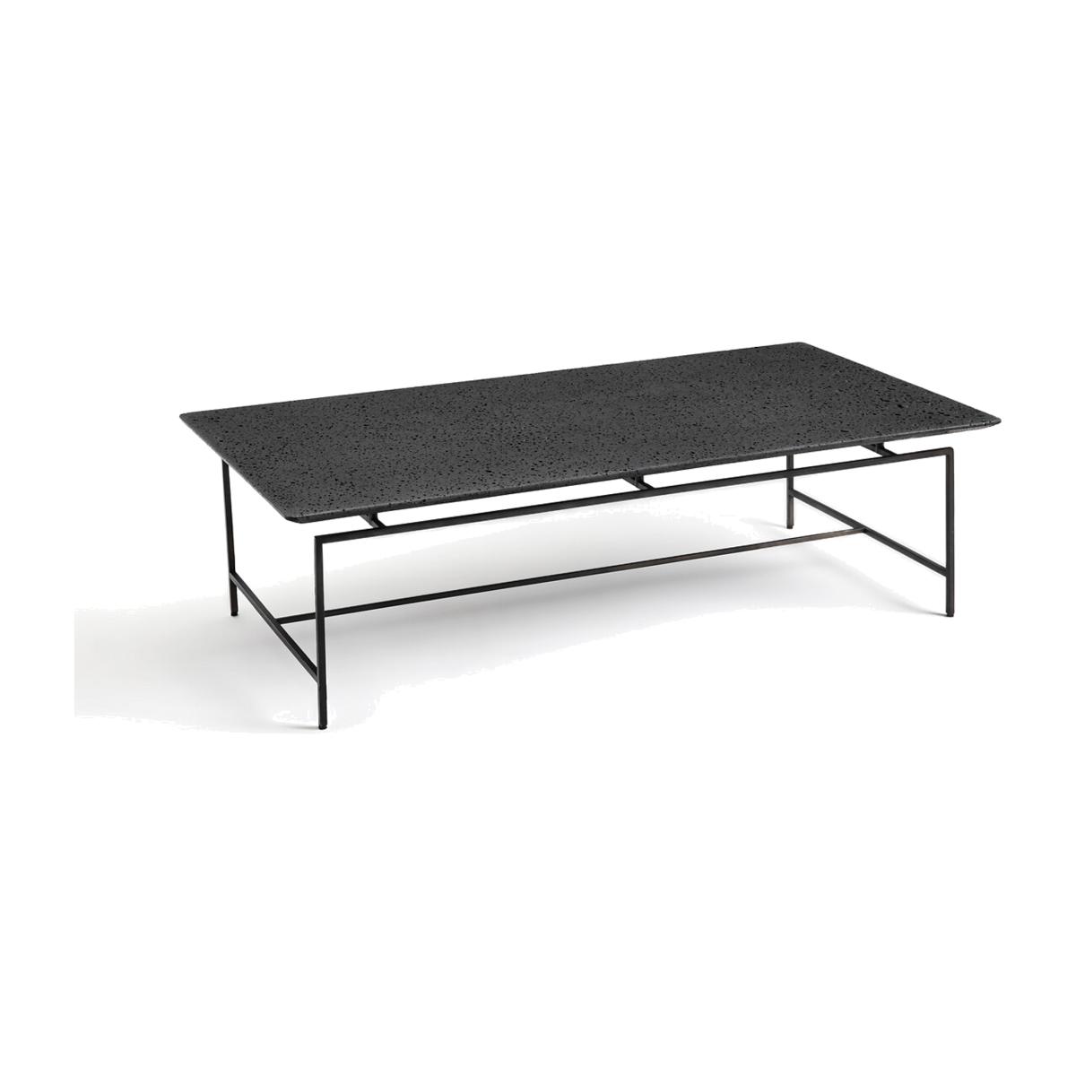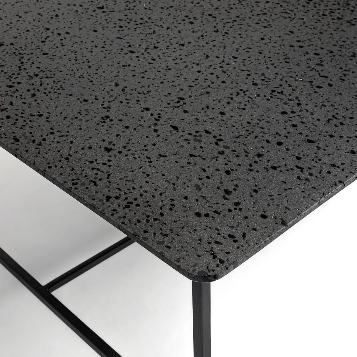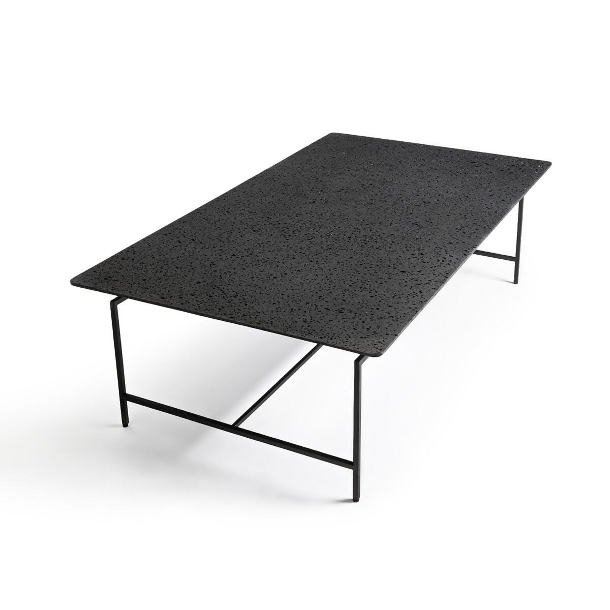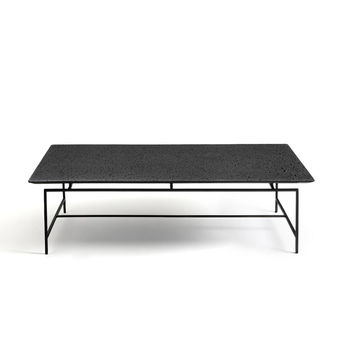 The Oréko coffee table. This unusual console table features a volcanic stone top on a minimalistic metal base. Each piece is unique.