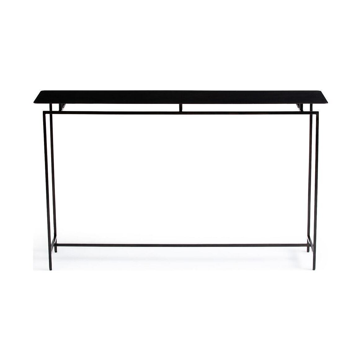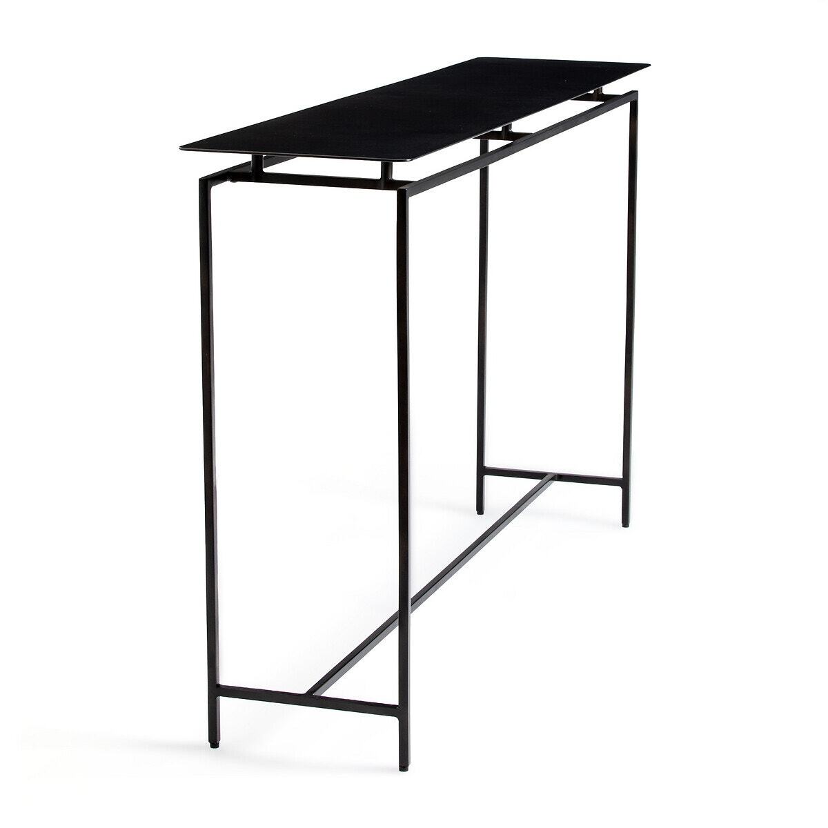 The Oréko console. The tabletop of this metal console table appears to 'float' thanks to its clever structure. Organic shaped table top in aged-effect metal.
