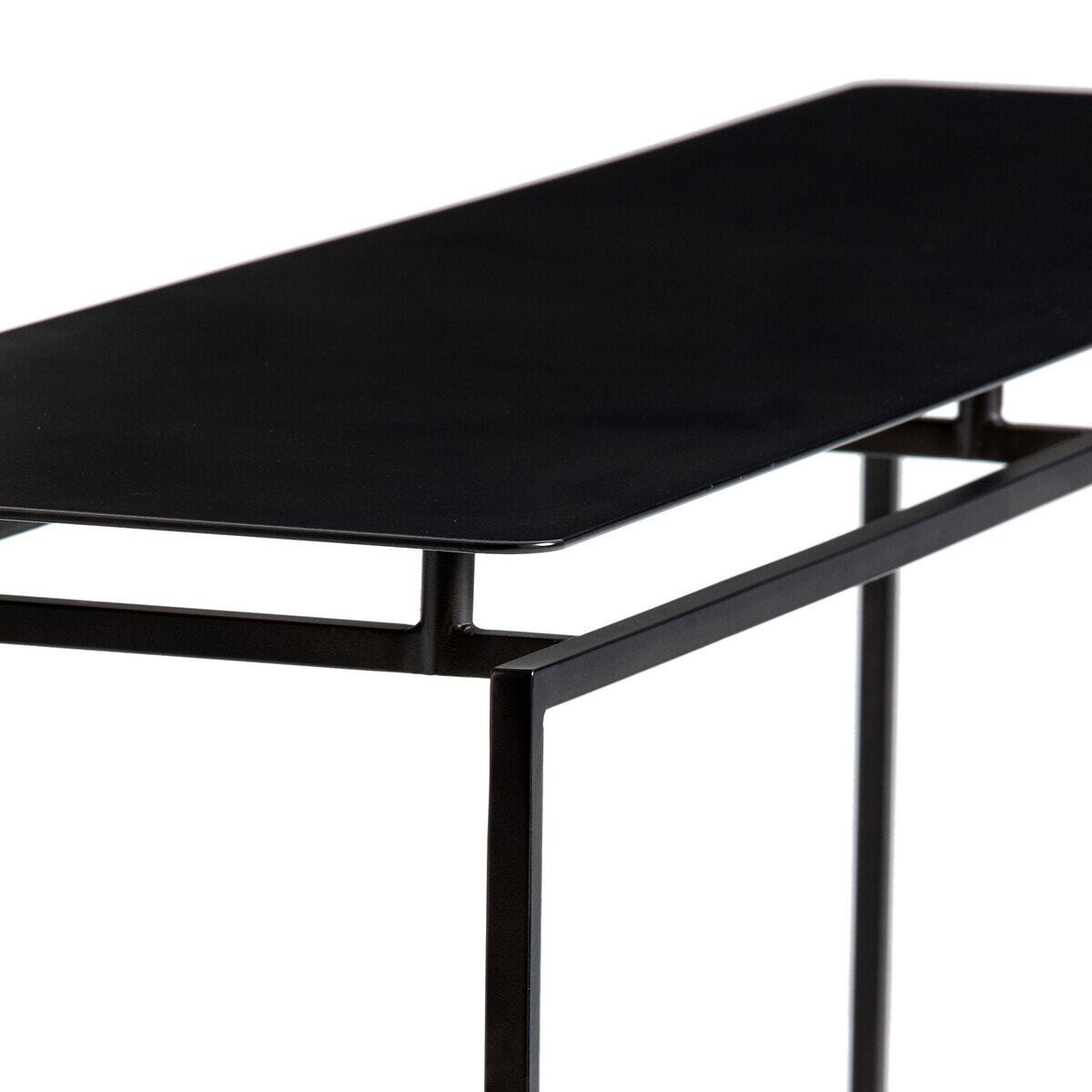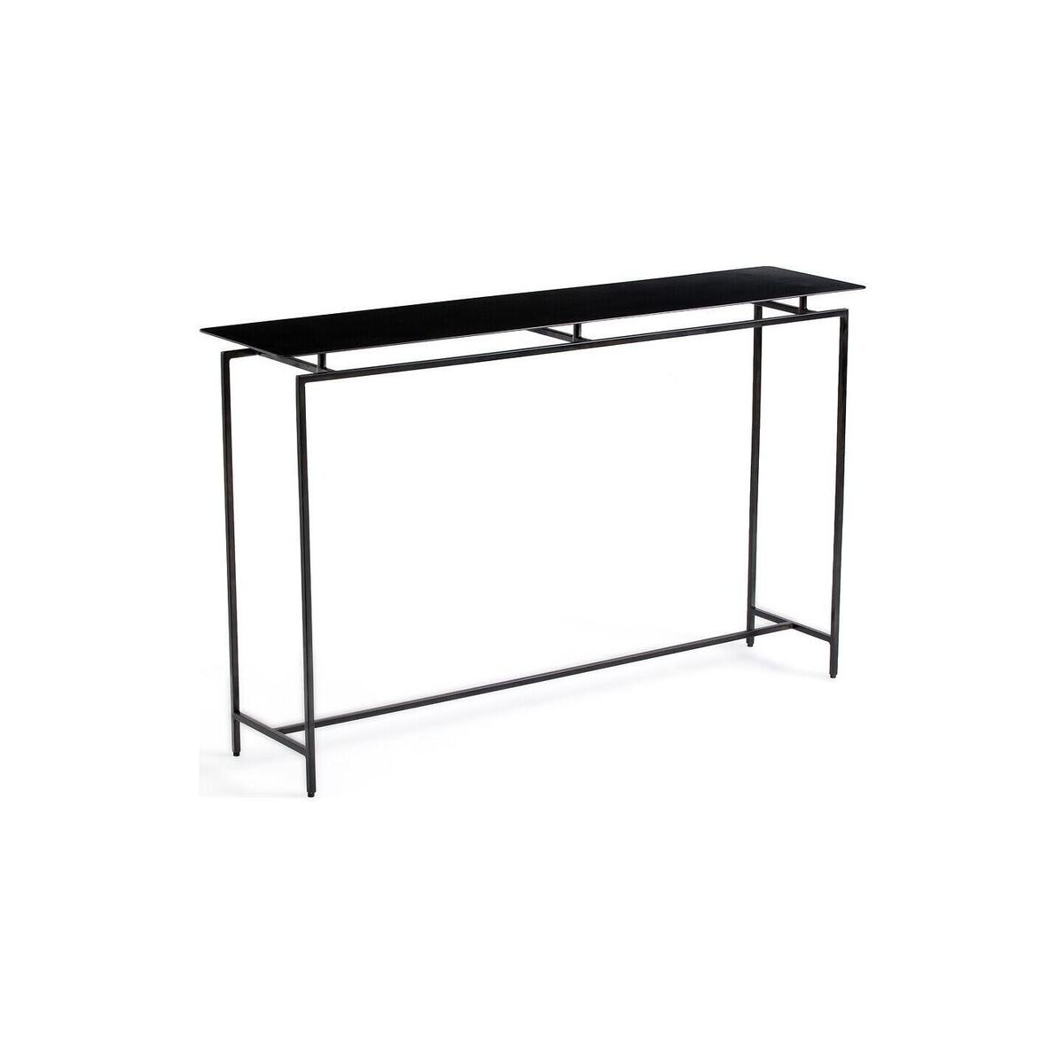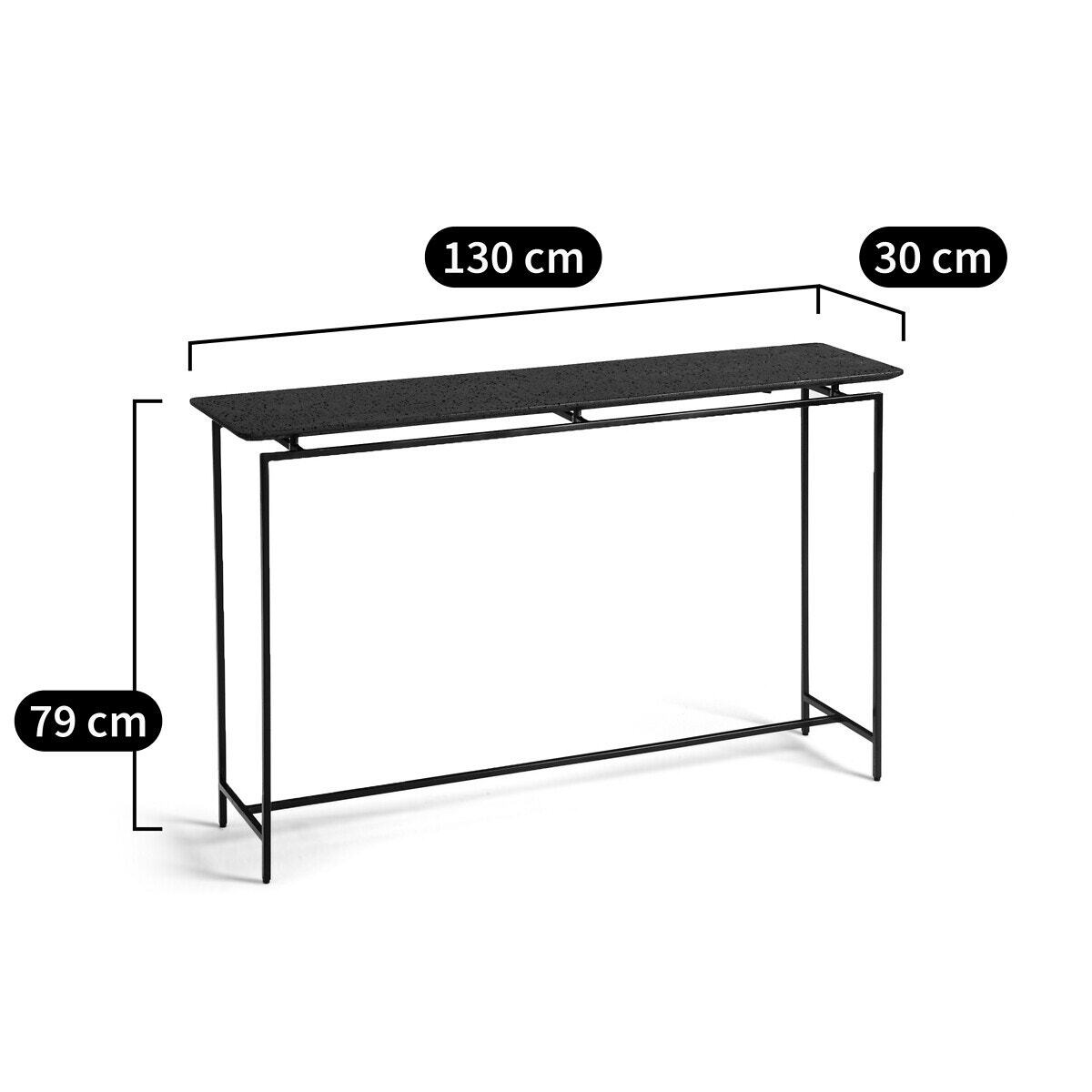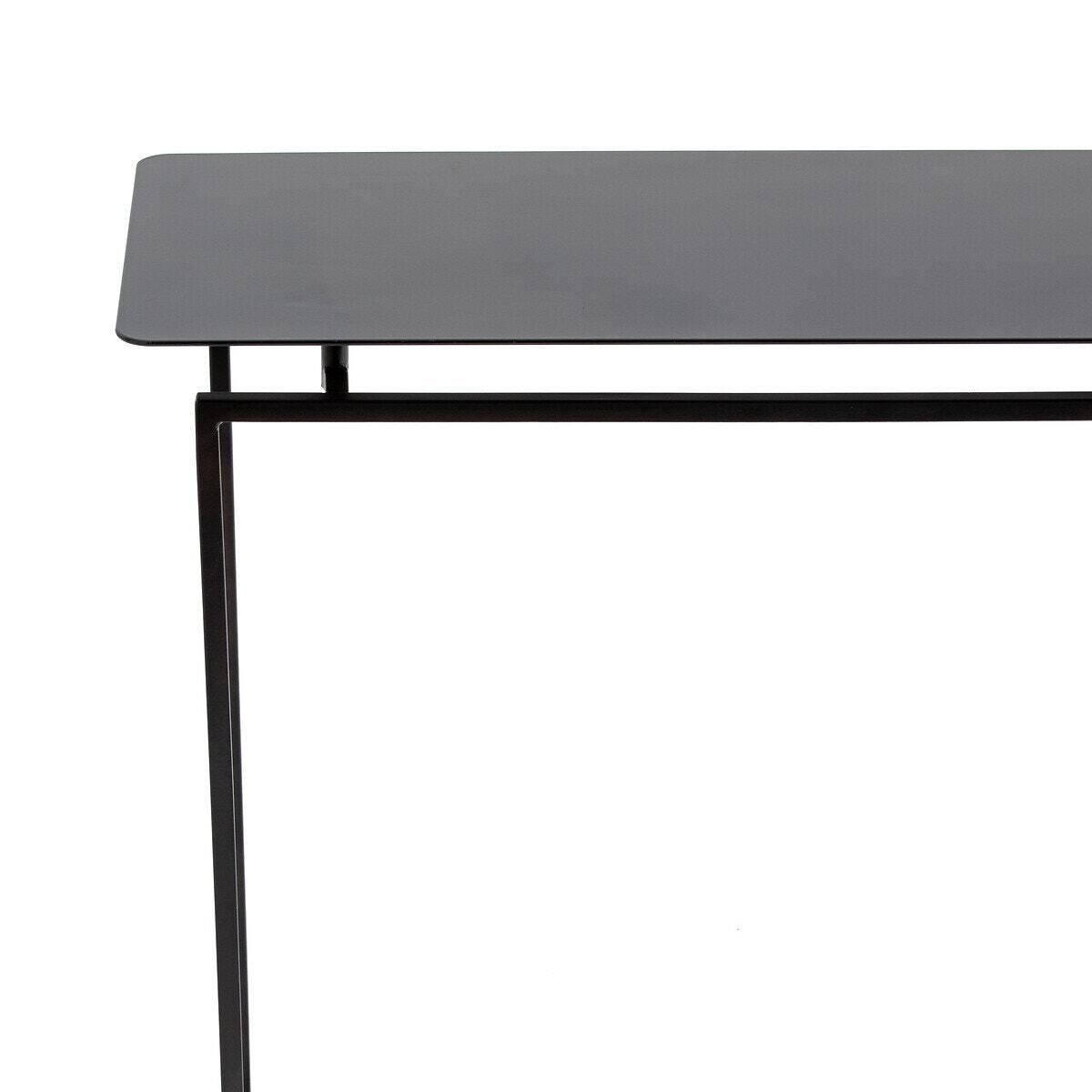 I love this metal console - its sleek, minimalist design makes it incredibly versatile for a range of interiors, from modern urban spaces to more industrial or monochrome schemes. It works particularly well against textured or patterned walls where it can add a touch of contemporary edge without overpowering the space. Practical styling tips include using the top surface for decorative accessories like a mirror, table lamp, or a tray to catch keys, while the sturdy lower shelf is perfect for baskets or storage boxes to keep clutter at bay. Its slim profile also means it can slot seamlessly into narrow hallways or entryways, making it a functional yet chic addition to many different rooms.