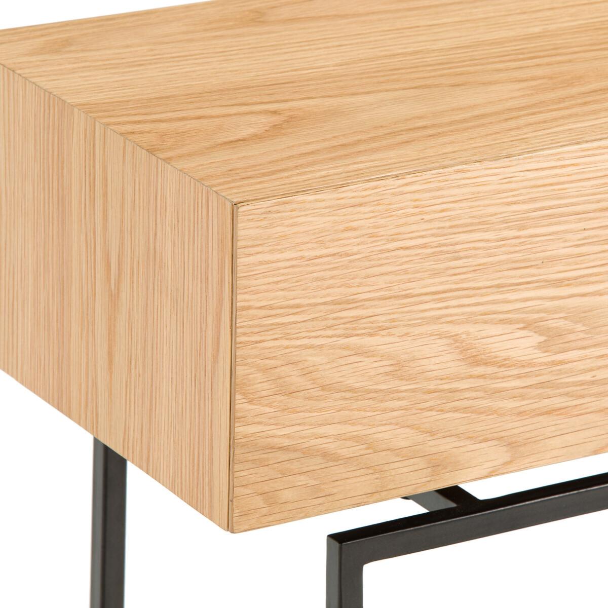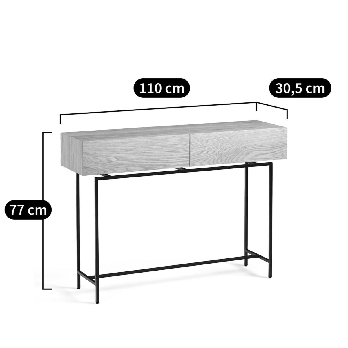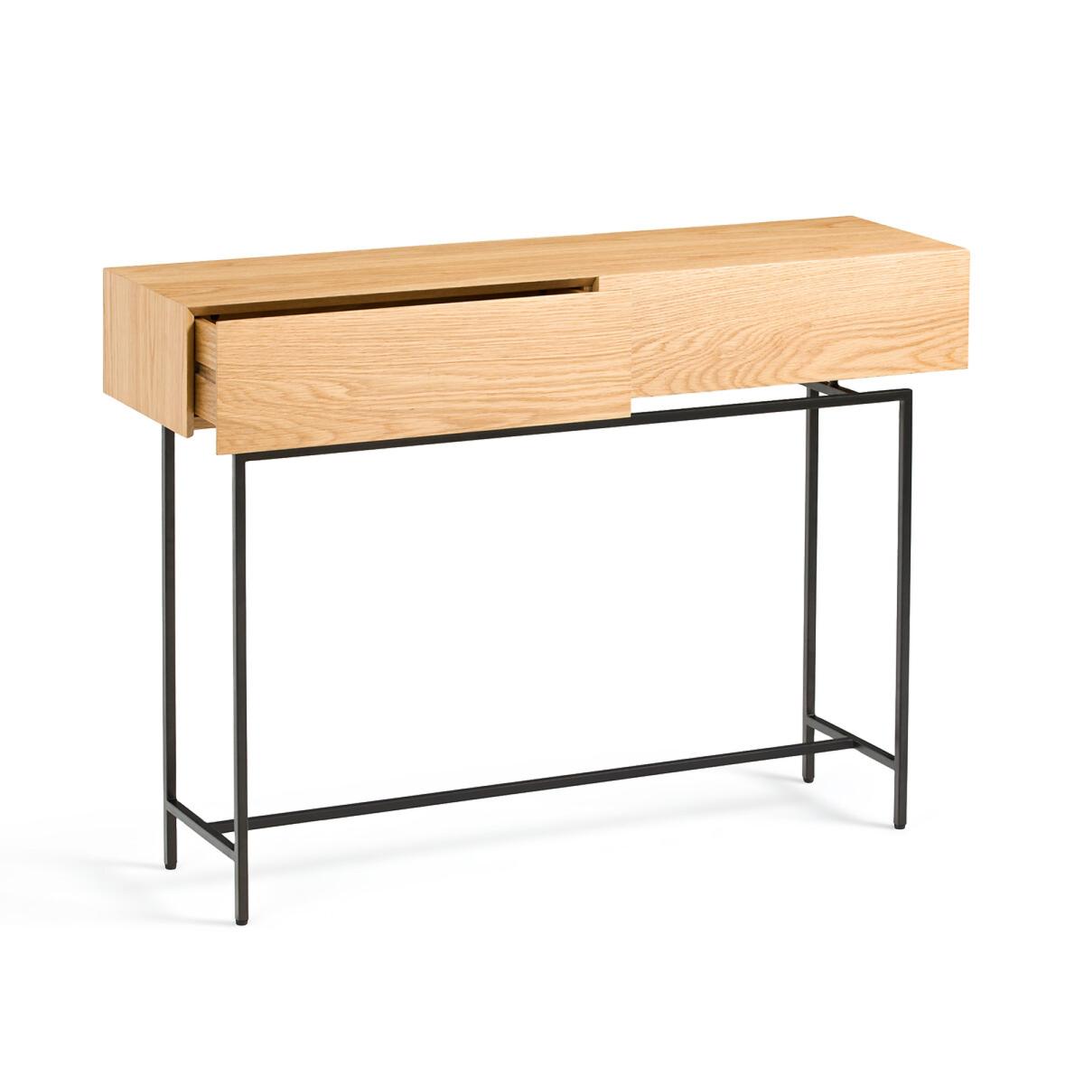 I love this console because of its clean, modern design that balances natural oak with sleek black metal accents, making it versatile across a range of interiors. It works particularly well in contemporary, Scandinavian, or minimalist spaces, offering both style and practicality. For styling, try layering with decorative baskets, a statement lamp, or framed artwork to add personality without overcrowding. The two drawers also provide useful storage for keys or mail, helping keep your space tidy. Position it against a hallway wall, or use it as a breakfast station in the kitchen-its understated elegance makes it easy to incorporate into various settings.