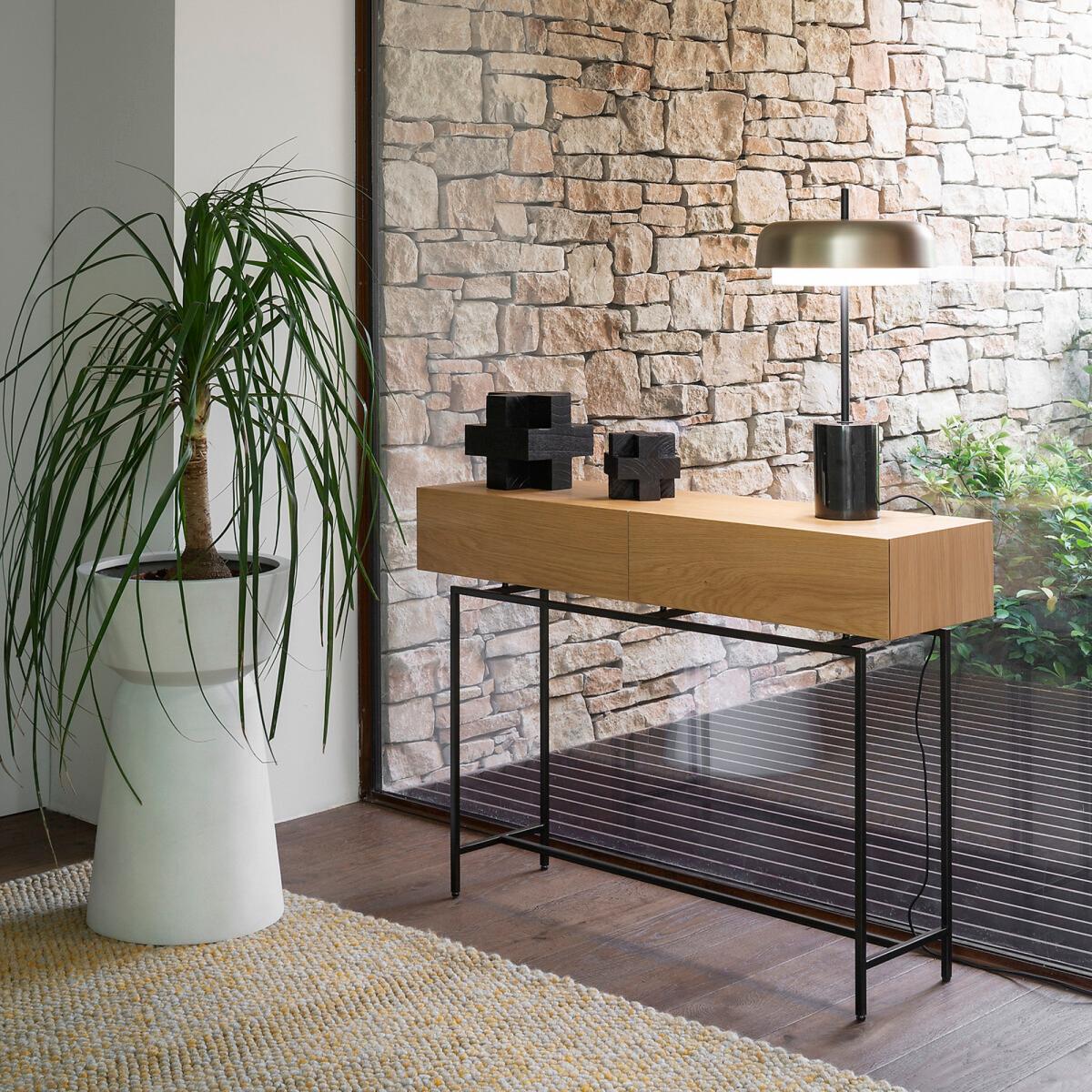 Timeless and airy design... The Oreko console has a 2-drawer unit that seems to float on its metal base. A signature design by AMPM.