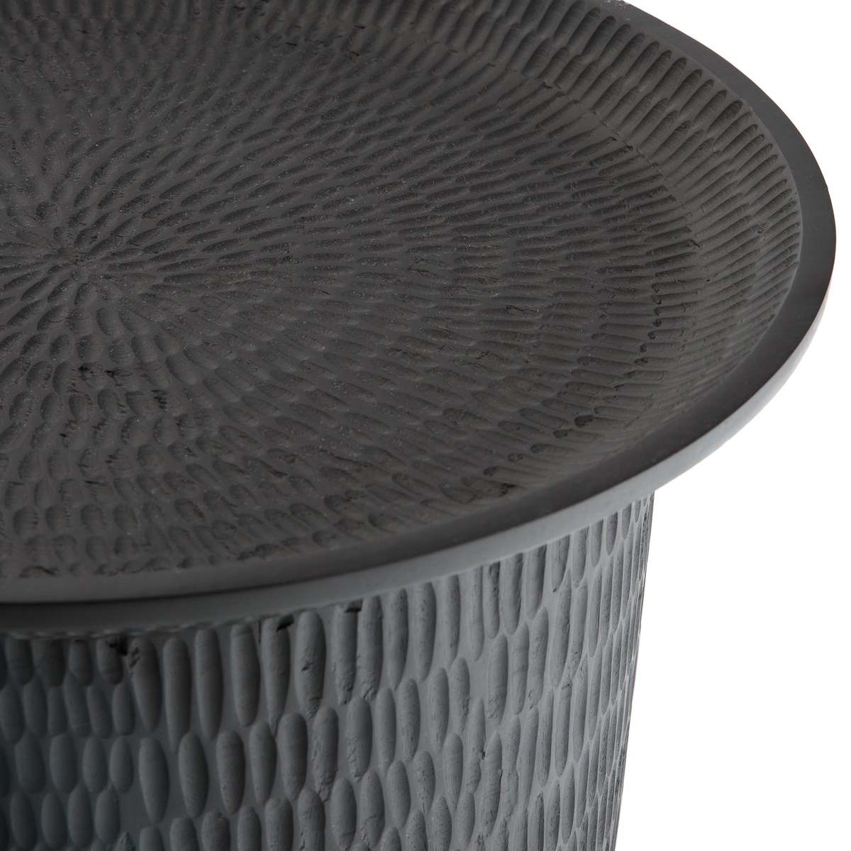 Add a touch of the exotic to your coffee break or reading time with this unusual and eye-catching  occasional table. Made from solid mango wood using traditional methods, its textured effect is achieved by carving out individual marks in the surface, making every table a one-off piece.Pair it with other items from the Oreus collection for complete coordination.