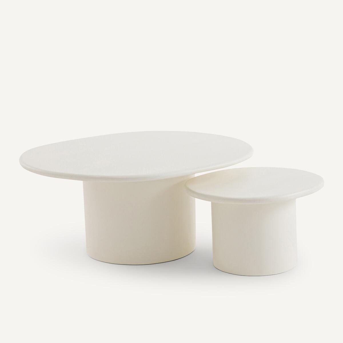 Handcrafted, the Oreus coffee table is made of solid mango wood. An organic shape with a chamfered finish, Oreus mixes nature and sophistication. A semi-nesting coffee table by AMPM.Product Details • Painted FSC® certified solid mango wood • Angled edge top • Hand-crafted, each piece is unique. Dimensions • Width: 89cm • Height: 38.5cm • Depth: 82.5cmDelivery:. Sold pre-assembled. Available for home delivery. • WOOD FROM SUSTAINABLY MANAGED FORESTS. FSC® certified wood comes from forests that are environmentally, socially and economically well managed. Dimensions and weight of parcel1 parcel • L99 x H48 x D92cm, 23kg
