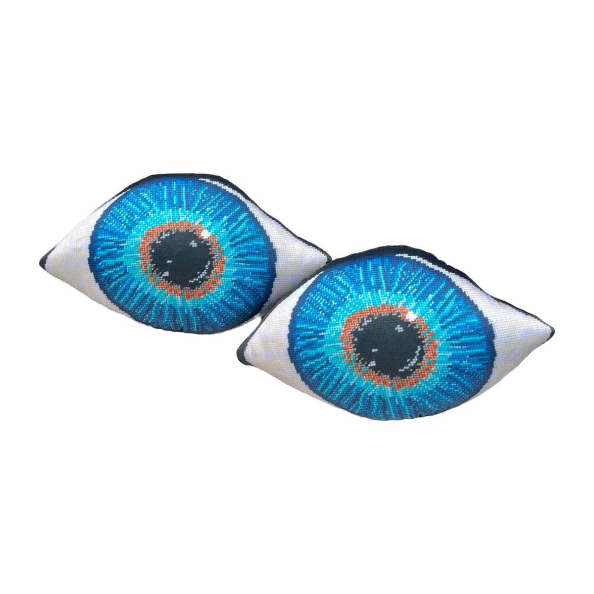 not needlepoint Sigh. The beauty of the blue. If you look closely at the whites of our sculpted pillows, you will see the word "ame," French for soul. Maybe this pair evokes deep thoughts, but we just think they're fun! custom made with crazy heart and soul delivered new to you in eco-friendly packaging dry clean organic cotton sateen face, a fabric reproduction of our original needlepoint art ink black designer velvet, 100% polyester blended down pillow insert, 50% feather / 50% poly fiber fill hand sewn closed at the bottom