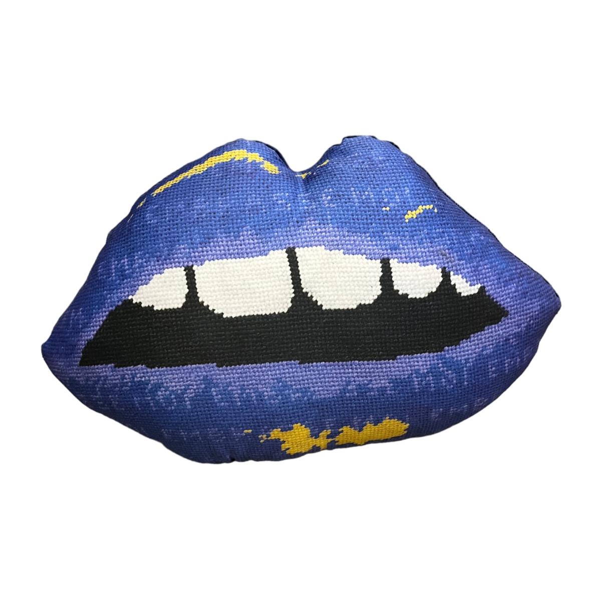 not needlepoint How do the French ask for a kiss? "Embrasse Moi!" x x custom made with crazy heart and soul delivered new to you in eco-friendly packaging dry clean organic cotton sateen, a beautiful fabric reproduction of our original needlepoint art digitally printed in the US using eco-friendly water-based inks ink black designer velvet reverse, 100% polyester blended down pillow insert, 50% down / 50% poly fiber hand sewn closed at the bottom