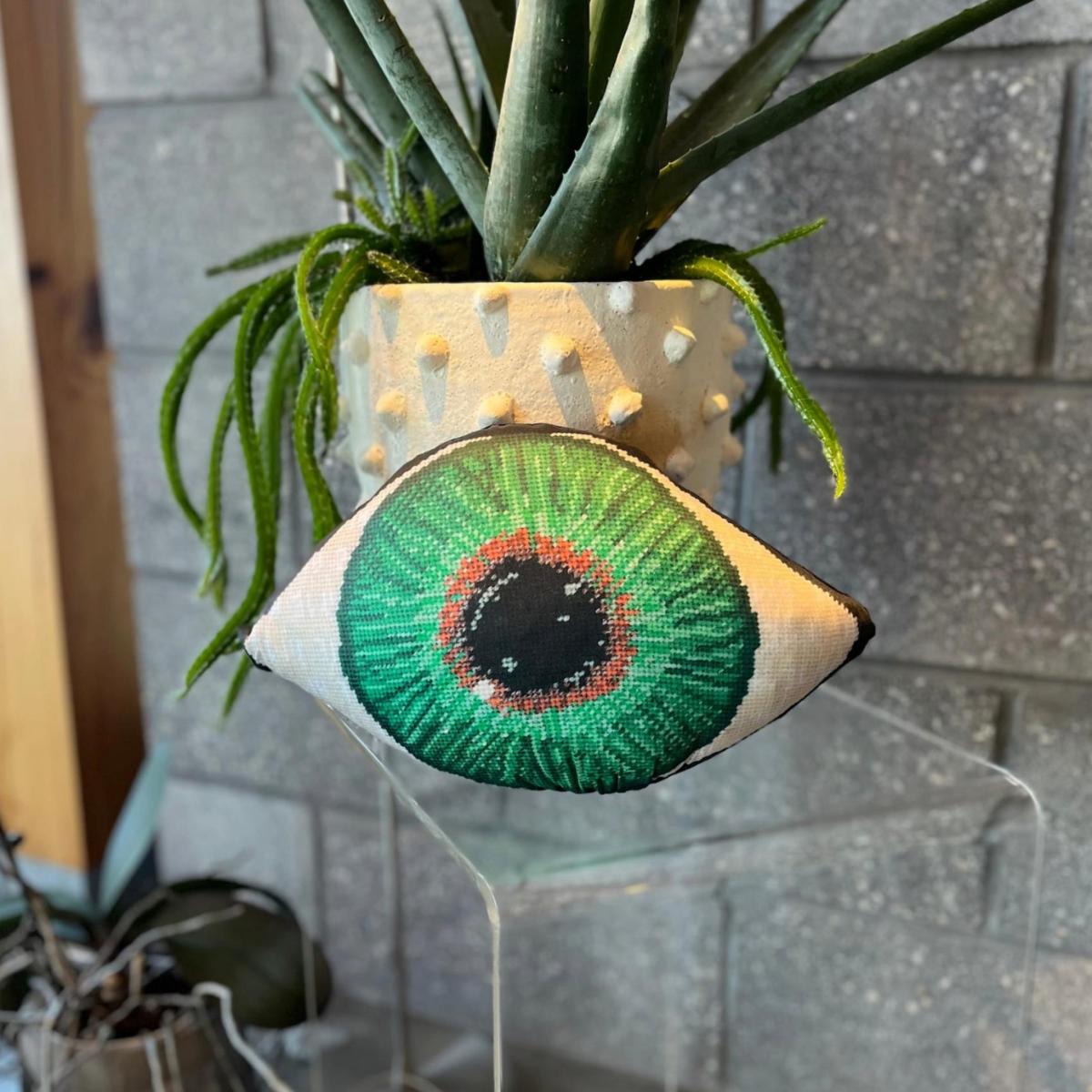 As featured in the Libertine Showroom at Bergdorf Goodman! not needlepoint Let this funky pillow add some pop-art fun to your crib! A playful mix of greens and a touch of gold give this pillow depth and charm. (Psst, did you notice the "ame" hidden in the design? It's French for soul!) custom made with crazy heart and soul by local artisans in the Blue Ridge Mountains of NC delivered new to you in eco-friendly packaging