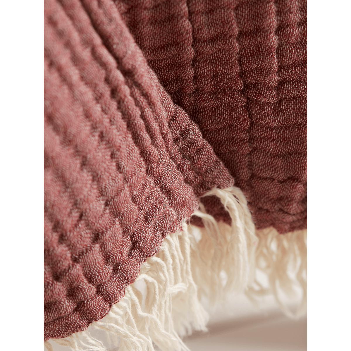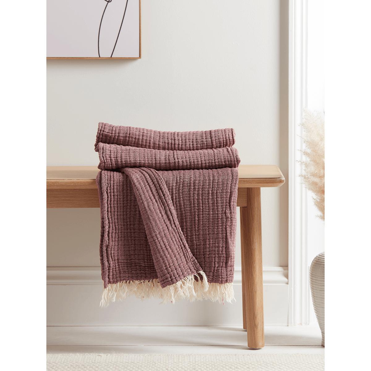 Crafted from interwoven strands of red and white organic cotton and bordered at two ends by a silky, almost cloud-like fringe, our Organic Cotton Throw in dusky mauve is perfect for dressing up plain furniture or for simply snuggling up with on the sofa.