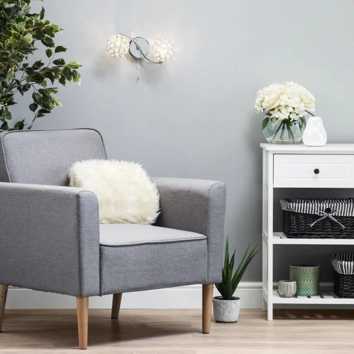I love this wall light for its sleek chrome finish and contemporary design, making it a versatile addition to both modern and minimalist interiors. Its twin glass orbs add a touch of elegance without overwhelming the space, and it works particularly well in bedrooms, living rooms, or hallways where you want to add ambient lighting. Styling tips include pairing it with muted colour schemes for a chic look, or contrasting it against textured wallpaper or darker tones for visual interest. Practical positioning is key-install it at eye level or slightly above to provide functional light while maintaining its decorative appeal. It’s especially effective if used in multiples, creating a cohesive and polished lighting scheme.