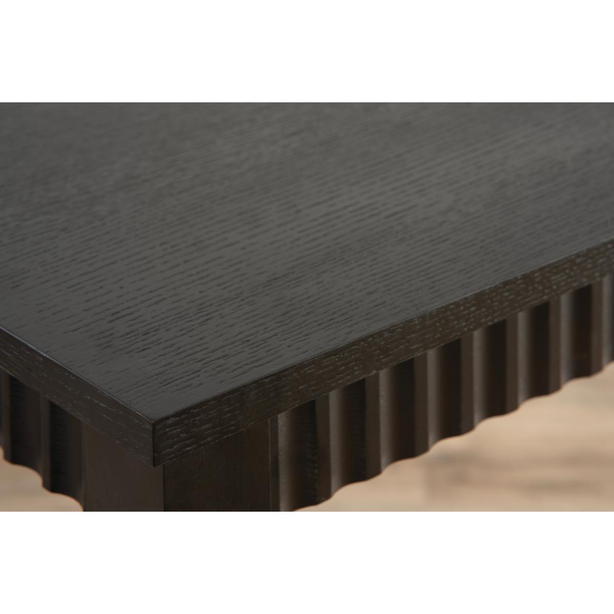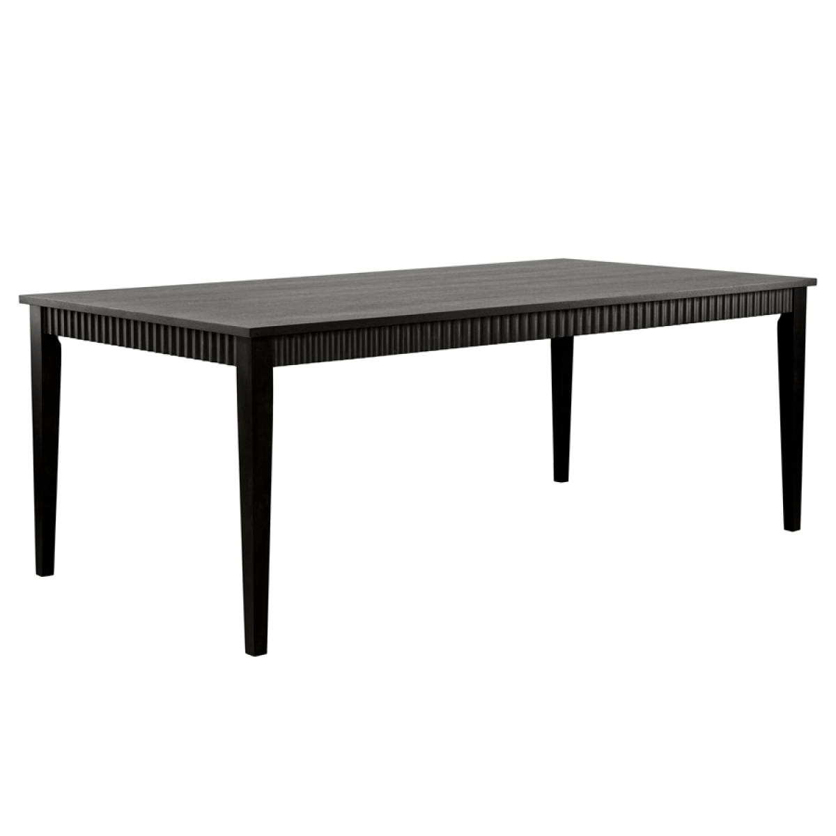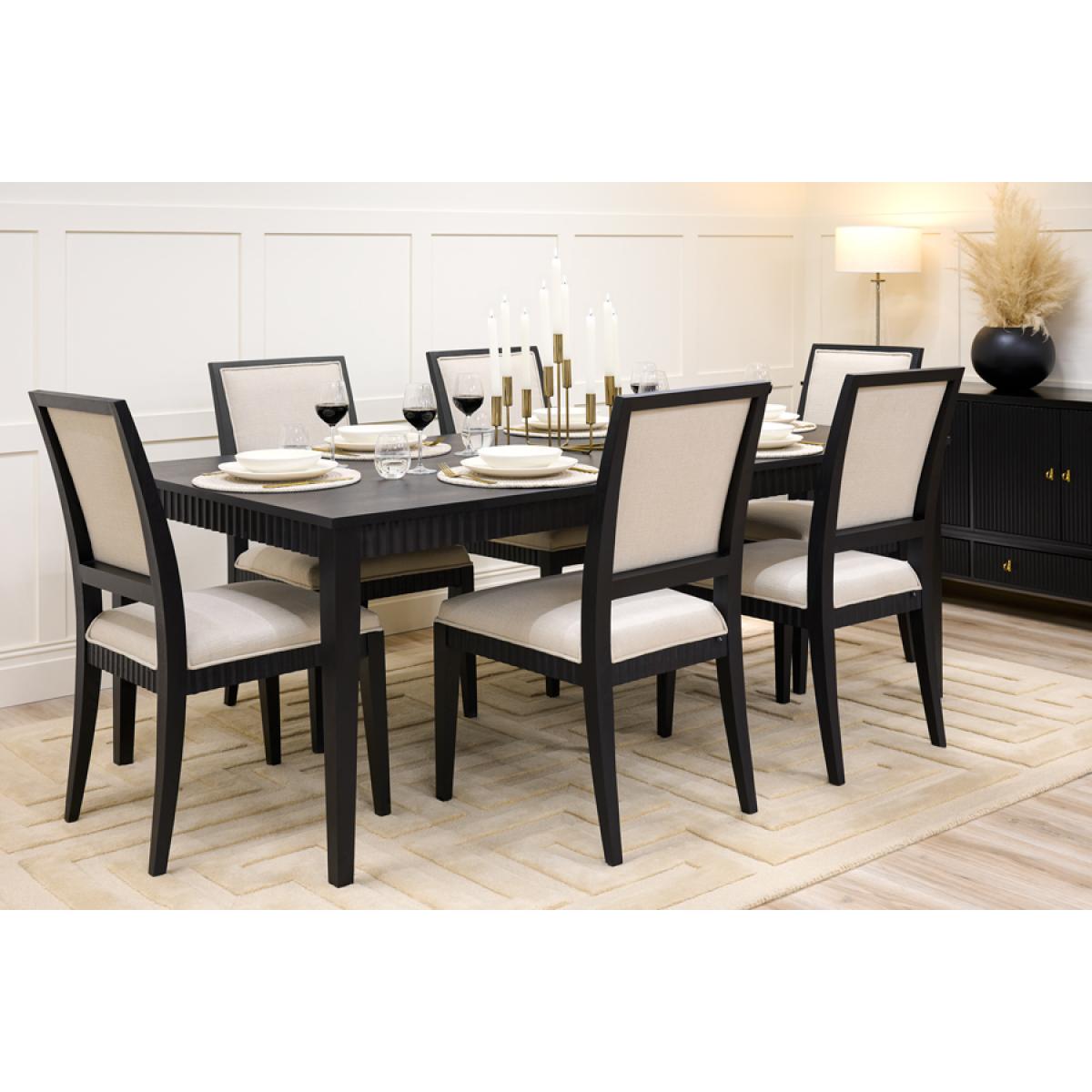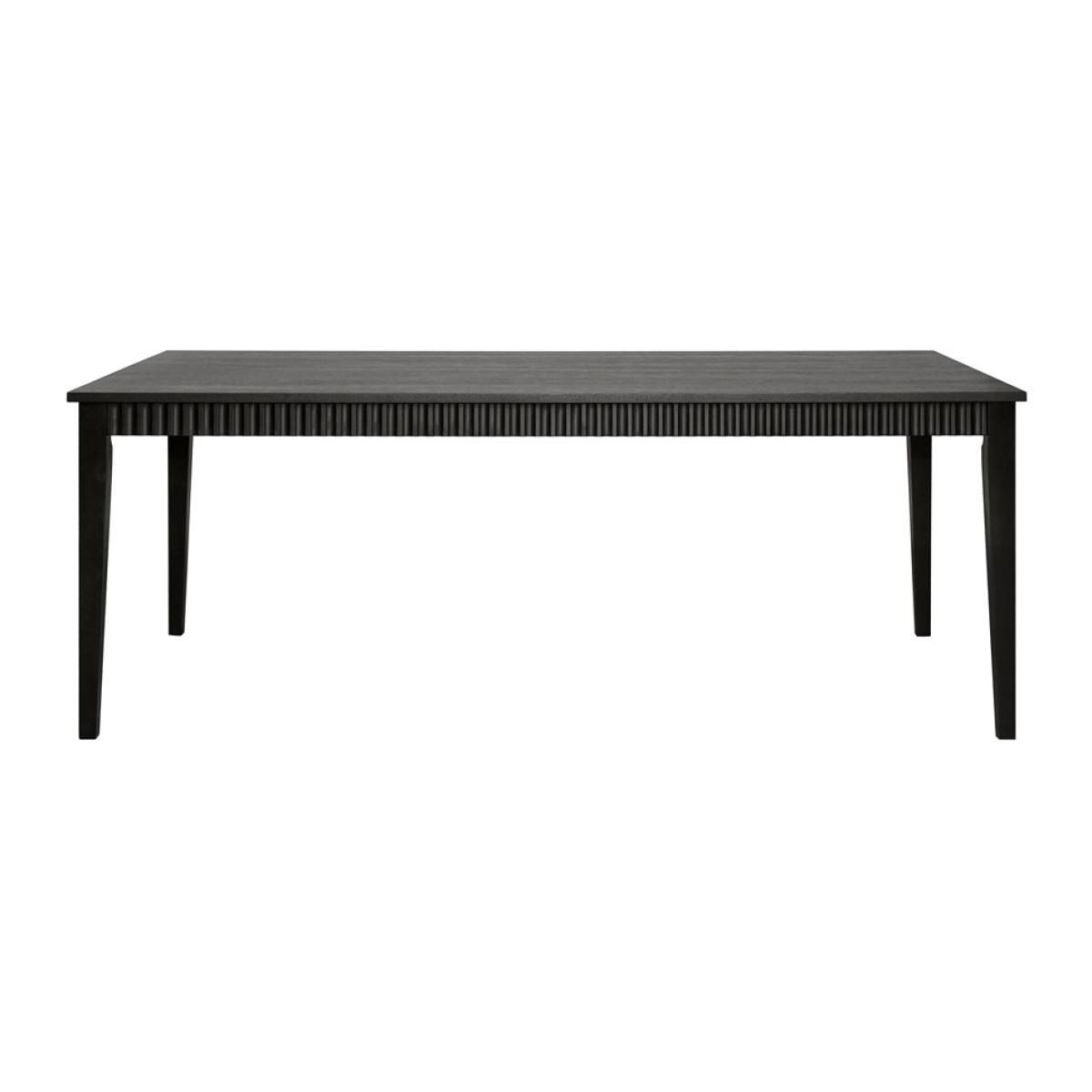A contemporary dining table with attractive fluted detailing. Solid ash and ash veneer with matt black finish. Will Seat up to eight people depending on chair size. Two-person assembly required.