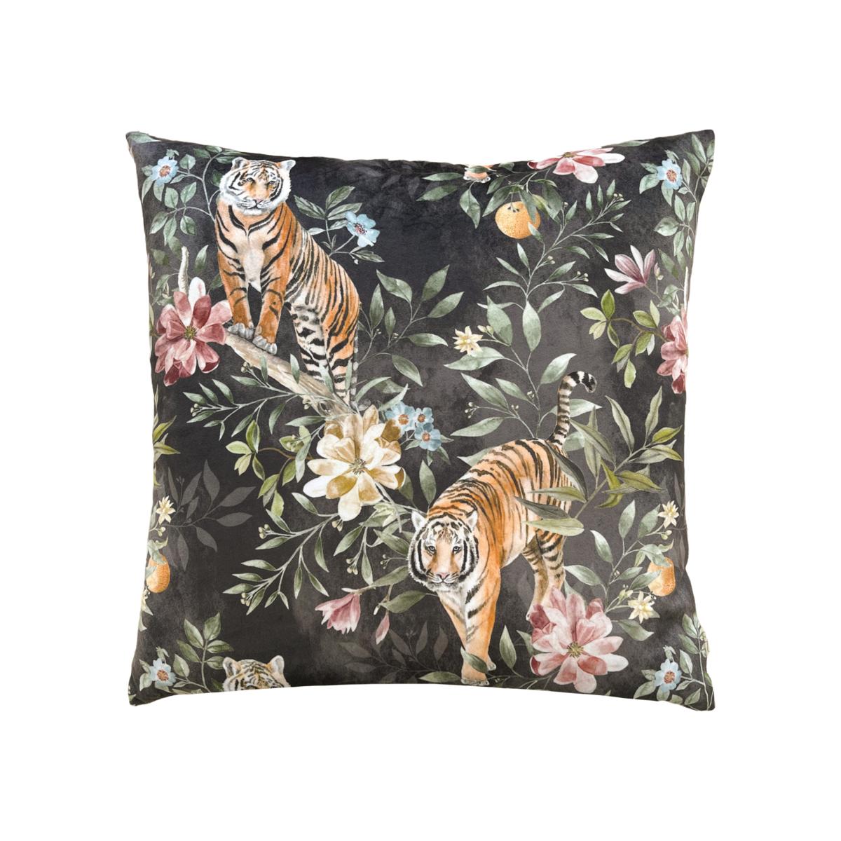 Orient Tiger Repeat Digitally Printed Velvet Cushion - Jet / Polyester