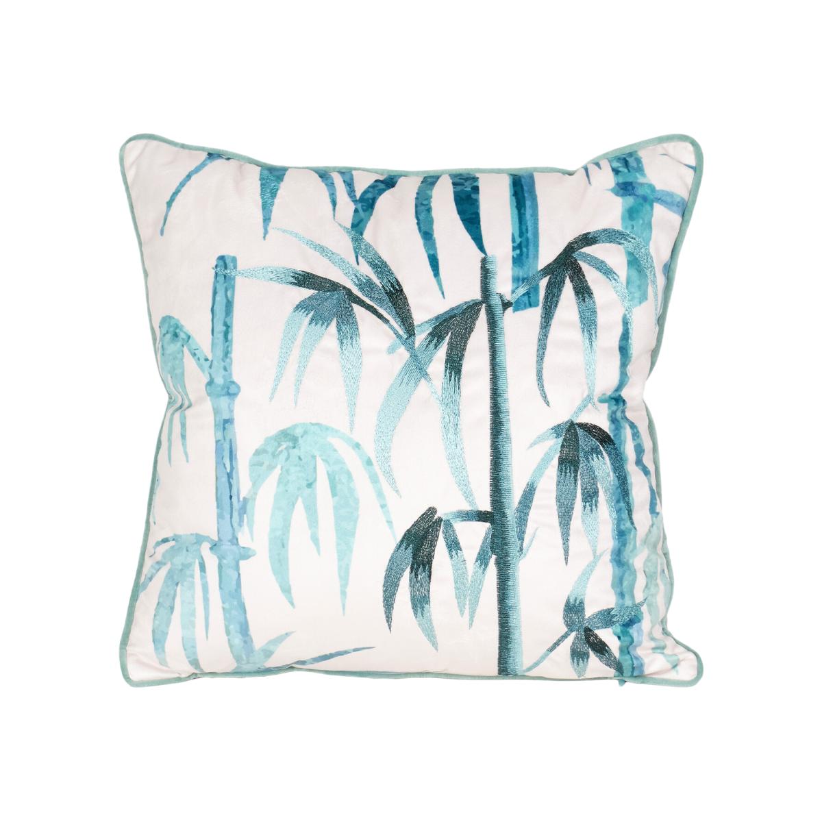 Add a pop of colour to your home with this Oriental Bamboo Embroidered Cushion. Featuring a pattern of embroidered bamboo shoots in soothing hues of blue and green, this cushion is sure to provide a tranquil element to any bedroom or living room. The piped edge gives it a sophisticated and stylish finish.