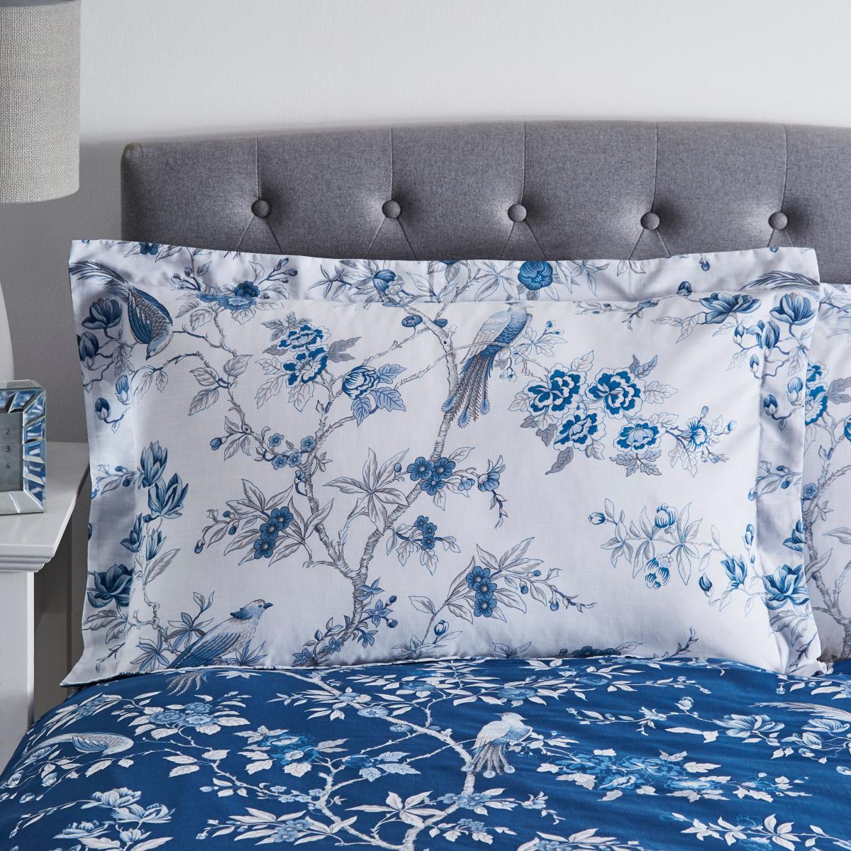 Printed with a classic but contemporary design of oriental birds on a blue colourway, this oxford pillowcase is reversible for an easy style change and is crafted from a soft polycotton blend. Machine washable for easy care, this pillowcase has a coordinating duvet cover set available.