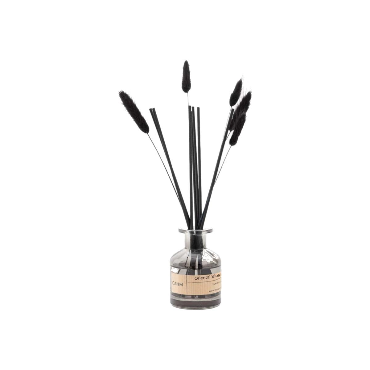 One of our most luxurious scents, the combination of fresh florals with oriental notes makes for a complex and uplighting fragrance delivered by the Oriental Blossom Reed Diffuser. As the fruity top notes that plunge through the exotic jasmine and rose to reach a musky base, your space will be filled with energising fragrance, helping to gain a new perspective. The dark glass of the Oriental Blossom Reed Diffuser complements the sustainably sourced black bunny tails, combining to not just add a fabulous fragrance, but also a visual delight to your home decor.
