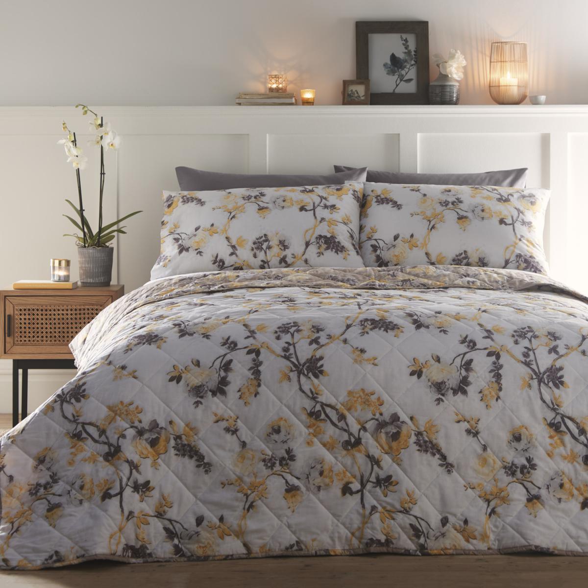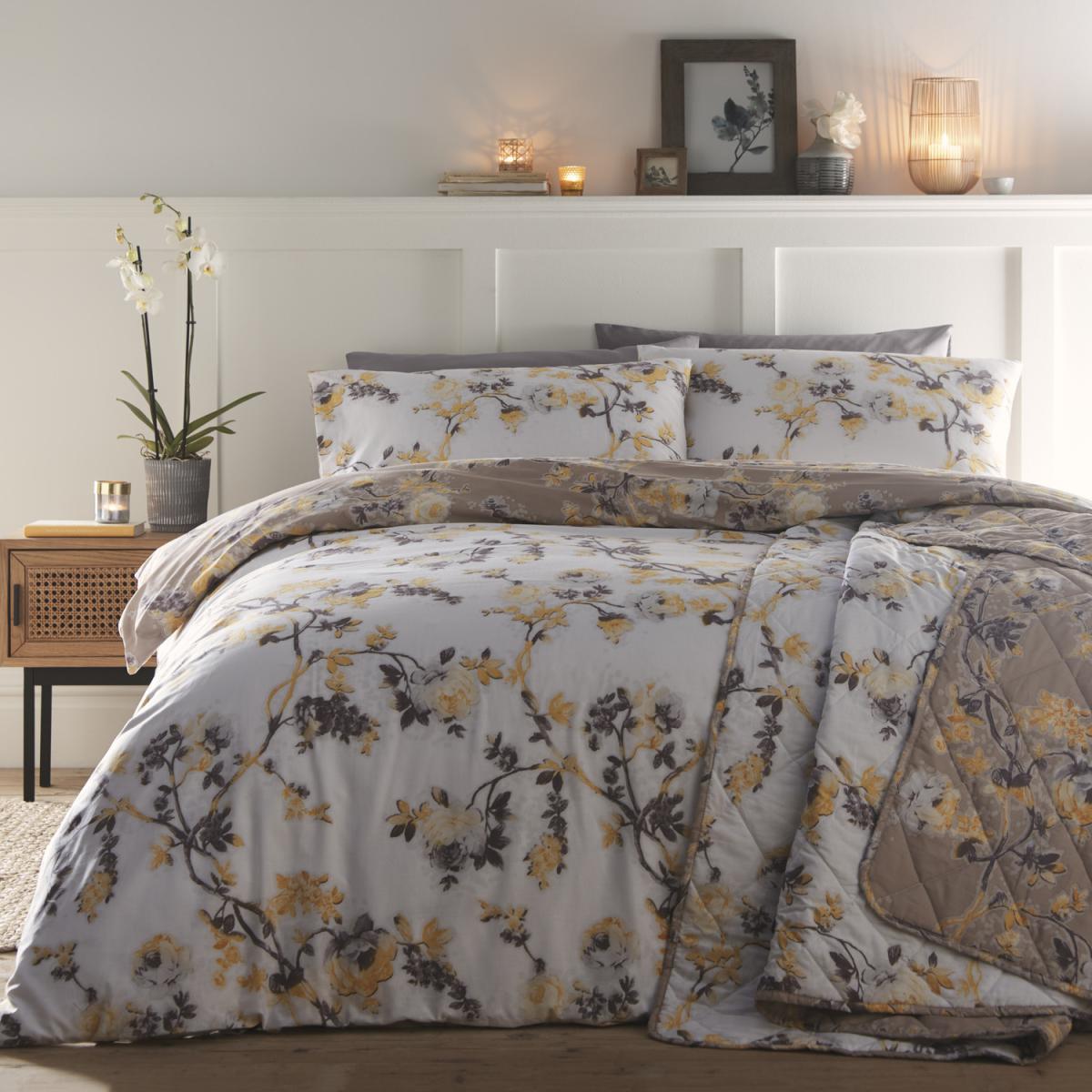 Oriental is a perfectly delicate watercolour floral in tones of ochre, natural and grey, depicting a rose vine elegantly trailing across a crisp white ground. A fully reversible duvet cover set, turn it over for a darker option, a gentle natural shade replaces the white backdrop with a luxurious quilted throw completing the opulent look.