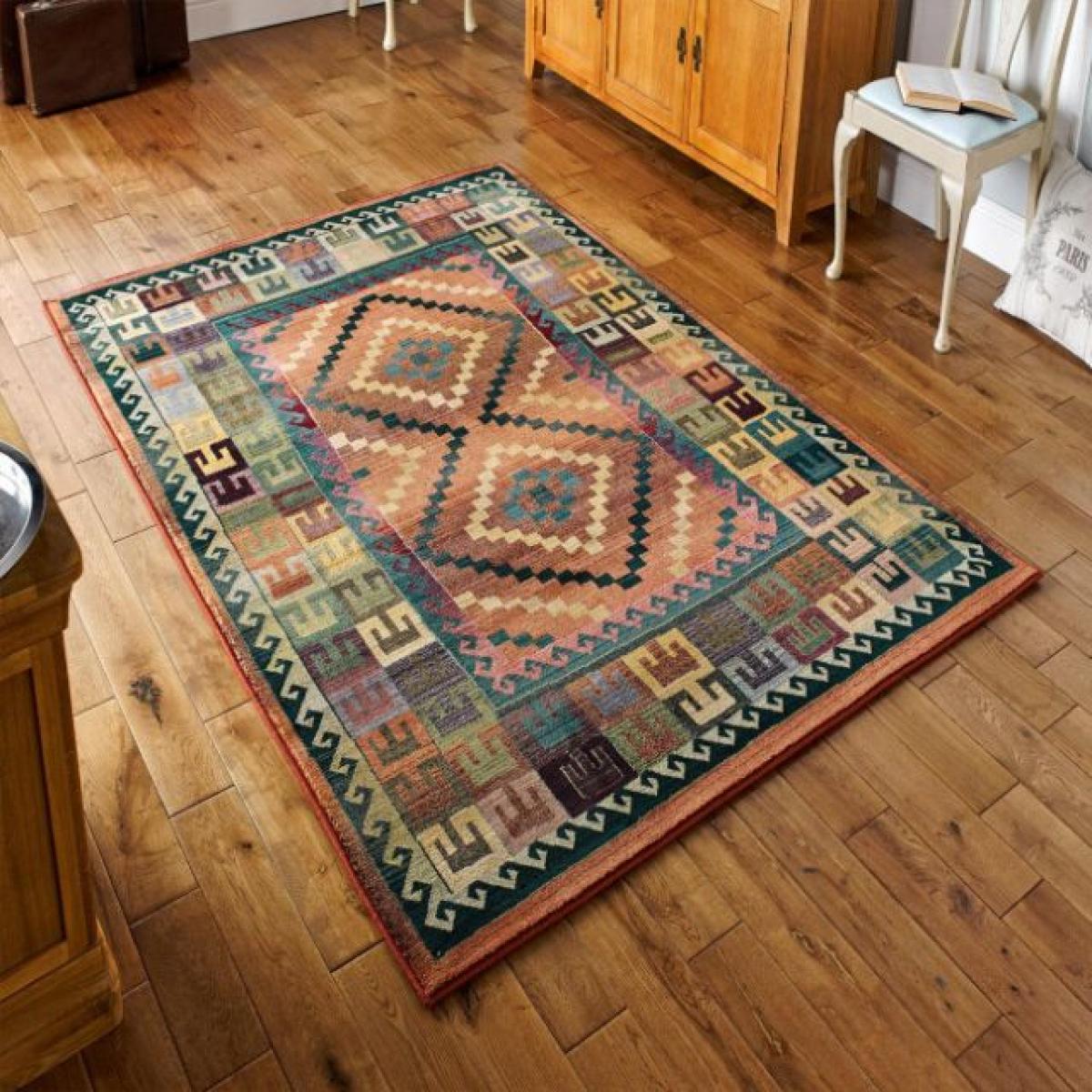 I love this rug because of its bold geometric pattern and versatile colour palette, which can effortlessly tie together both traditional and contemporary interiors. It works well in living rooms or bedrooms, especially when paired with neutral furniture to let the pattern stand out. Practically, it adds warmth and texture underfoot while its durable construction makes it suitable for high-traffic areas. For styling tip, consider layering it over a larger plain rug or adding complementary cushions and throws in similar earthy tones to create a cohesive look. This piece is a great way to introduce subtle boho charm without overwhelming the space.