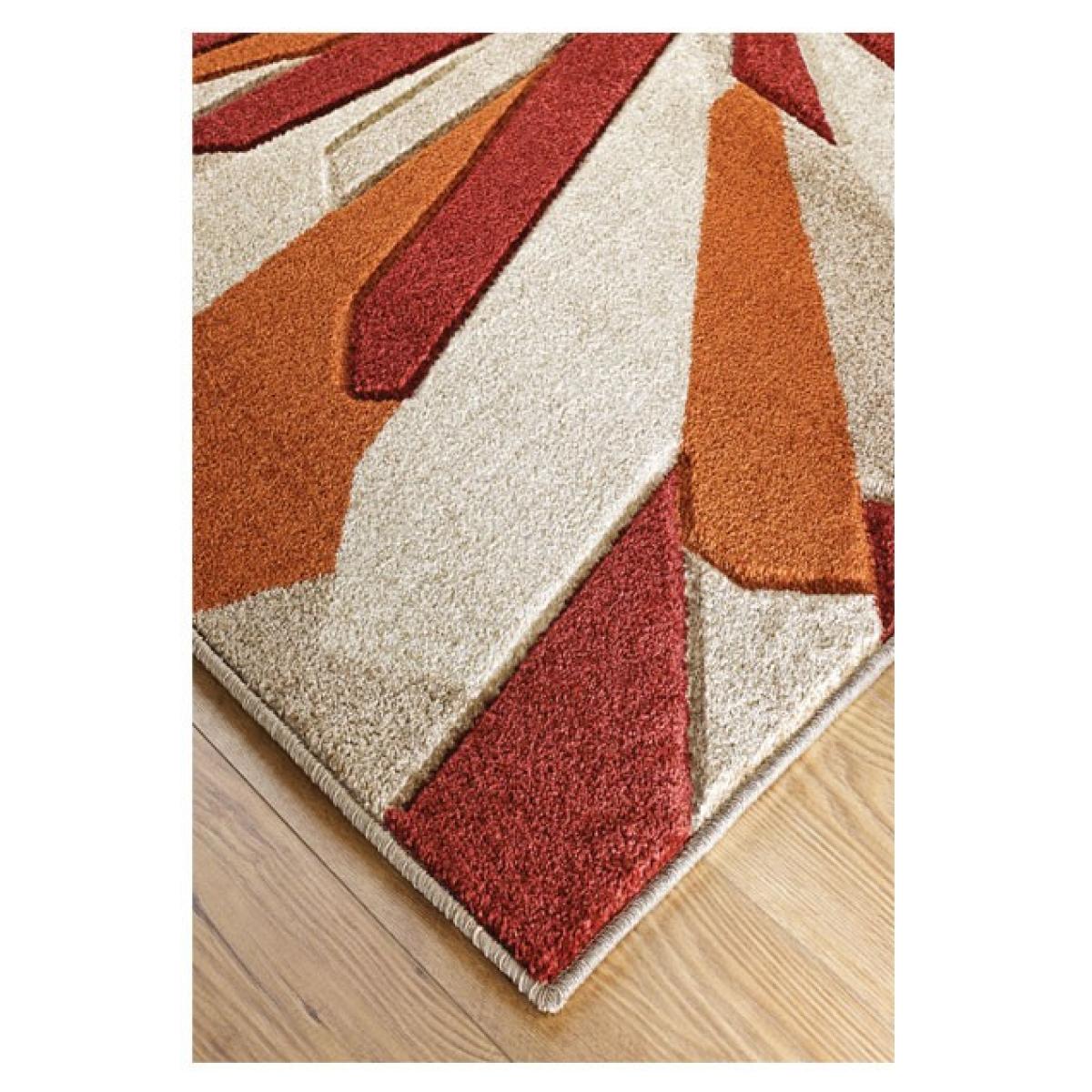 I love this rug for its bold, geometric design and warm colour palette, which adds visual interest without overwhelming a space. It works particularly well in contemporary or eclectic interiors, providing a striking focal point in living rooms or bedrooms. Practically, it's versatile enough to complement neutral furniture or to layer with patterned textiles for a more vibrant look. When styling, consider letting the rug anchor a seating area with simple furniture, or use it to define distinct zones in open-plan spaces. Its durable construction makes it a practical choice for high-traffic areas, while its eye-catching design keeps your space looking modern and lively.
