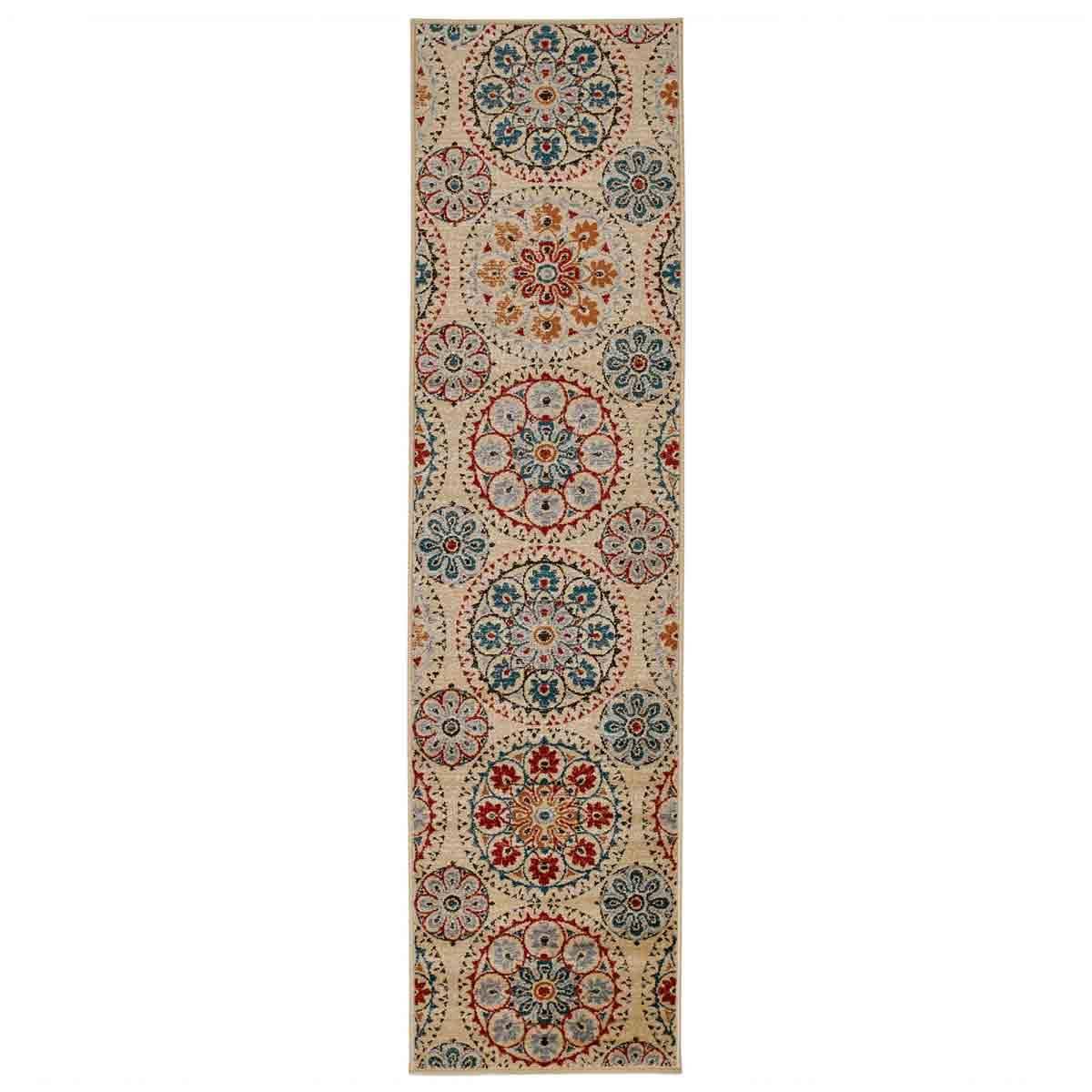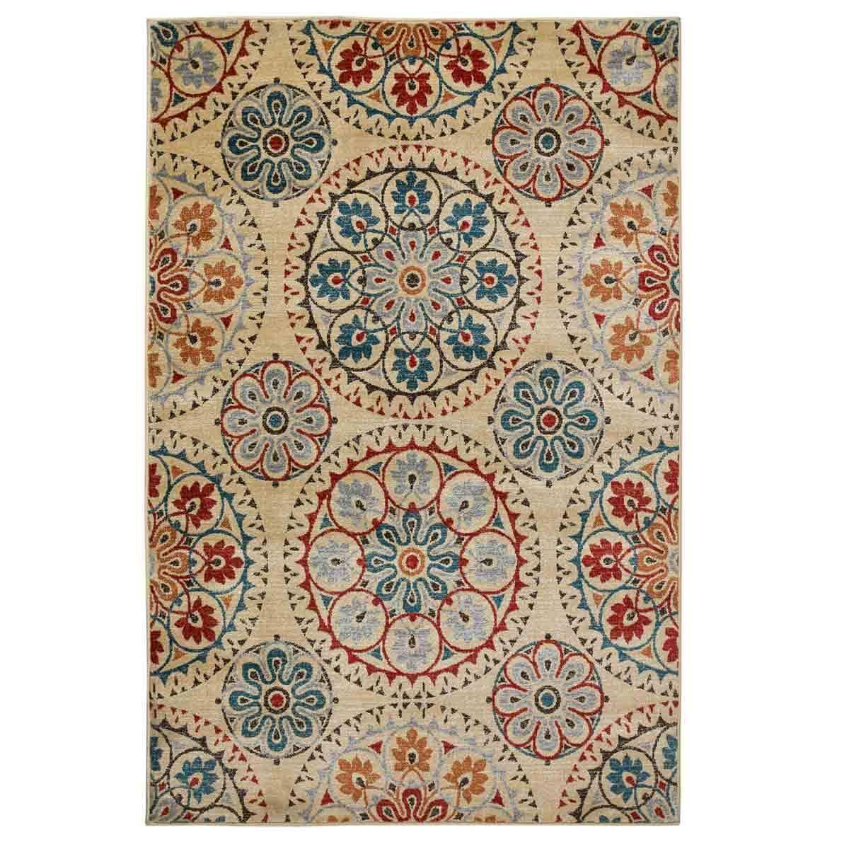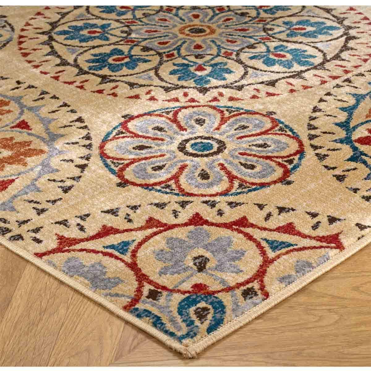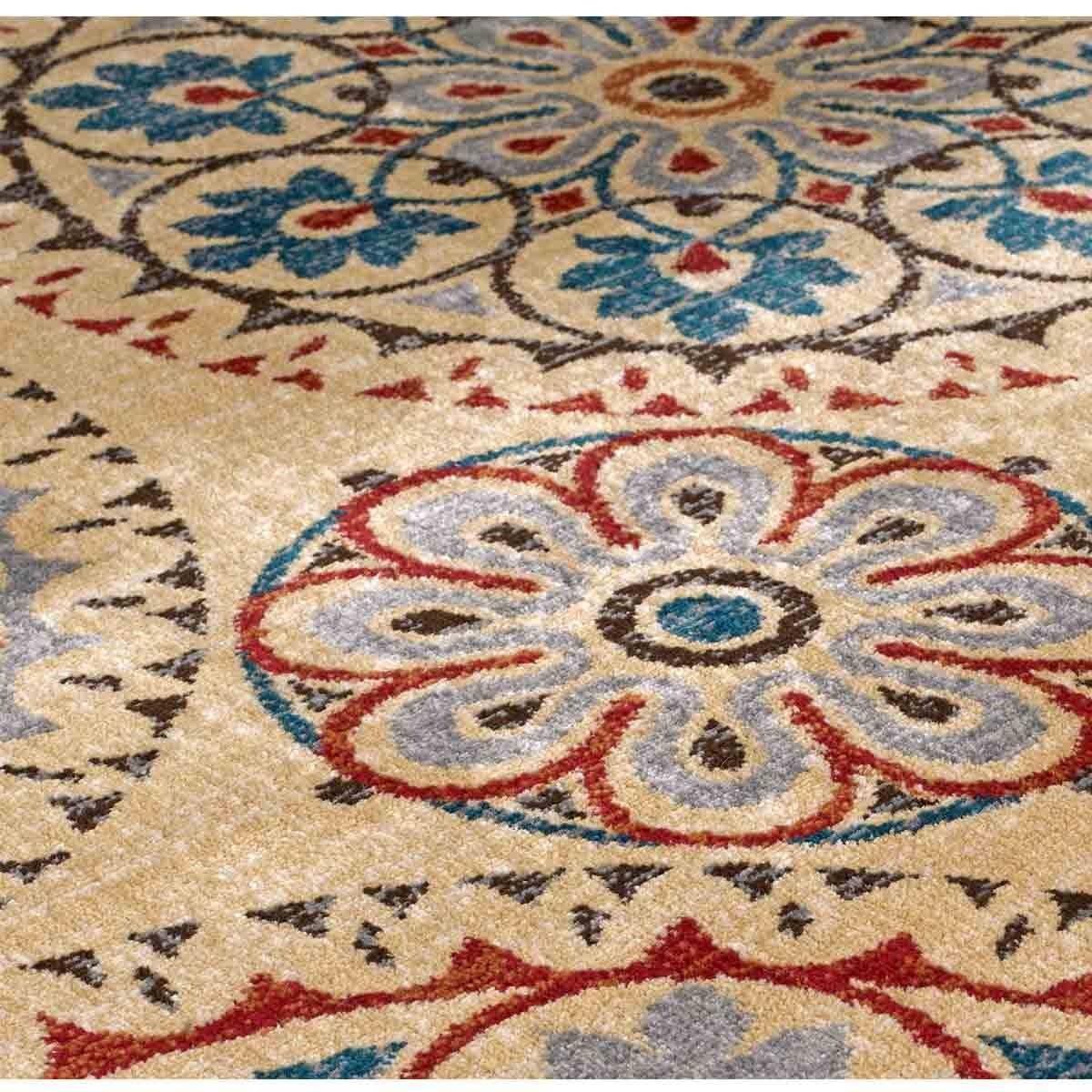 The rug is a great addition for adding warmth and pattern to a neutral or minimalist interior. I love how the colourful medallion design enhances both traditional and contemporary schemes, making it versatile for different rooms. It works especially well in living rooms or dining areas where you want a focus piece without overwhelming the space. For styling tips, pair it with solid-coloured upholstery and simple accessories to let the pattern stand out, and consider layering with textured cushions or throws for added dimension. Its durability and pattern make it practical for high-traffic areas, balancing style with functionality.