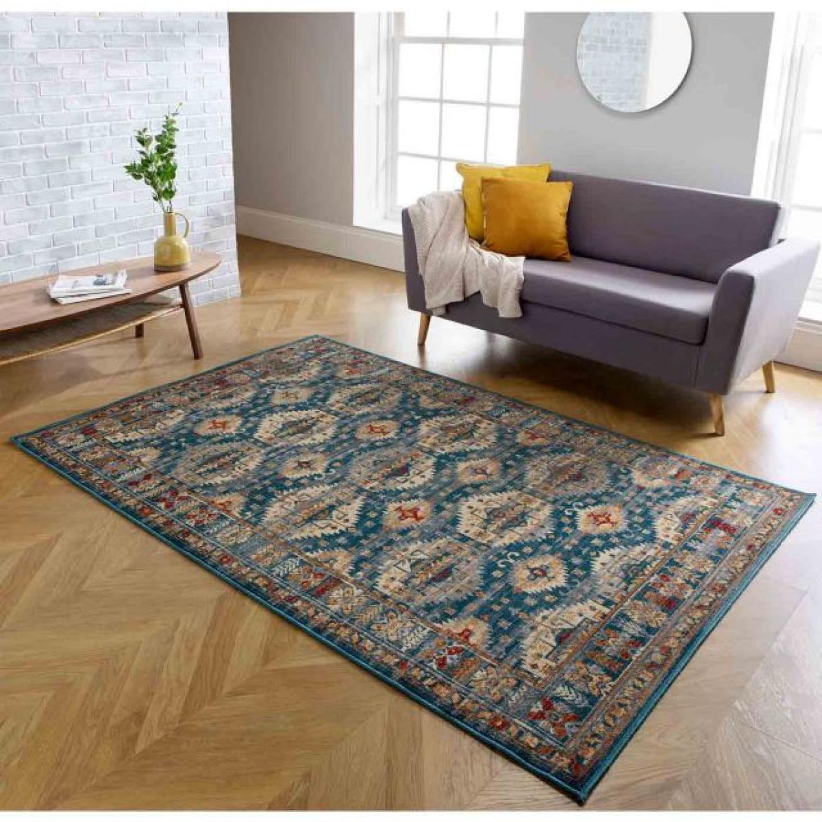 I love this rug for its versatile design and inviting colours, making it a great anchor for both modern and more traditional interiors. The intricate pattern adds visual interest without overwhelming the space, and its muted tones with hints of colour allow for easy pairing with a range of colour schemes. It works particularly well in living rooms or open plan areas where it can tie together different furnishings. For styling, consider pairing it with neutral or contrasting cushions and throws to add texture and depth, and ensure it’s large enough to sit comfortably beneath key furniture pieces, helping to define the space effectively.