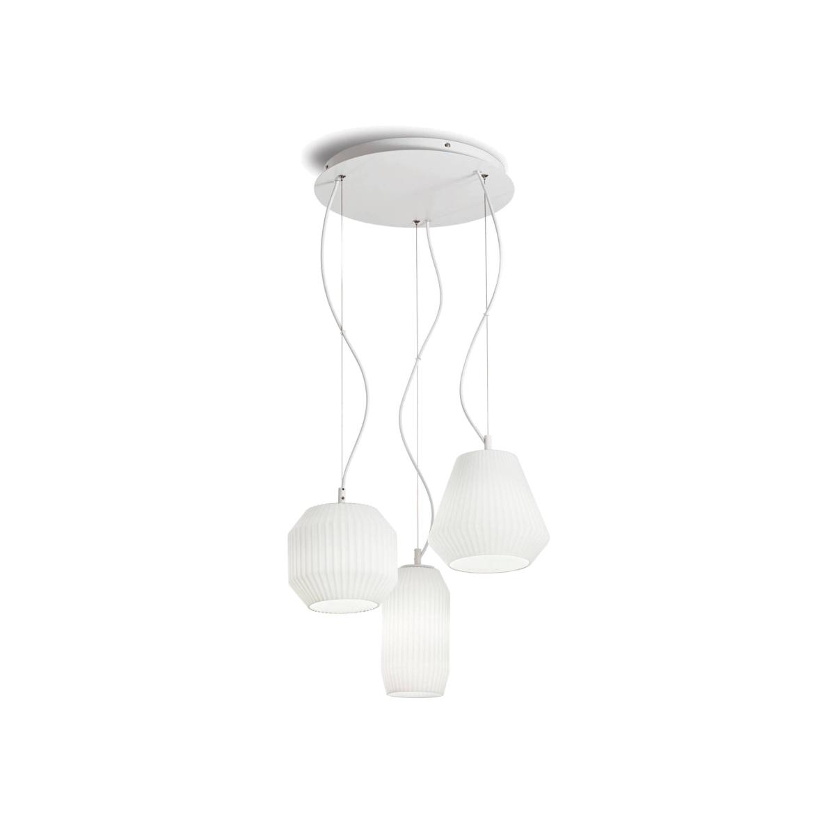 A white pendant which is sure to match any colour scheme. The fittings have white glass diffusers with a pleated look. This provides an additional dimension to the fitting. The range offers single pendant fittings with different shaped diffusers, and a three light pendant which has one diffuser of each shape. the fittings will provide ample illumination to become the main light fitting in the room. Class one.