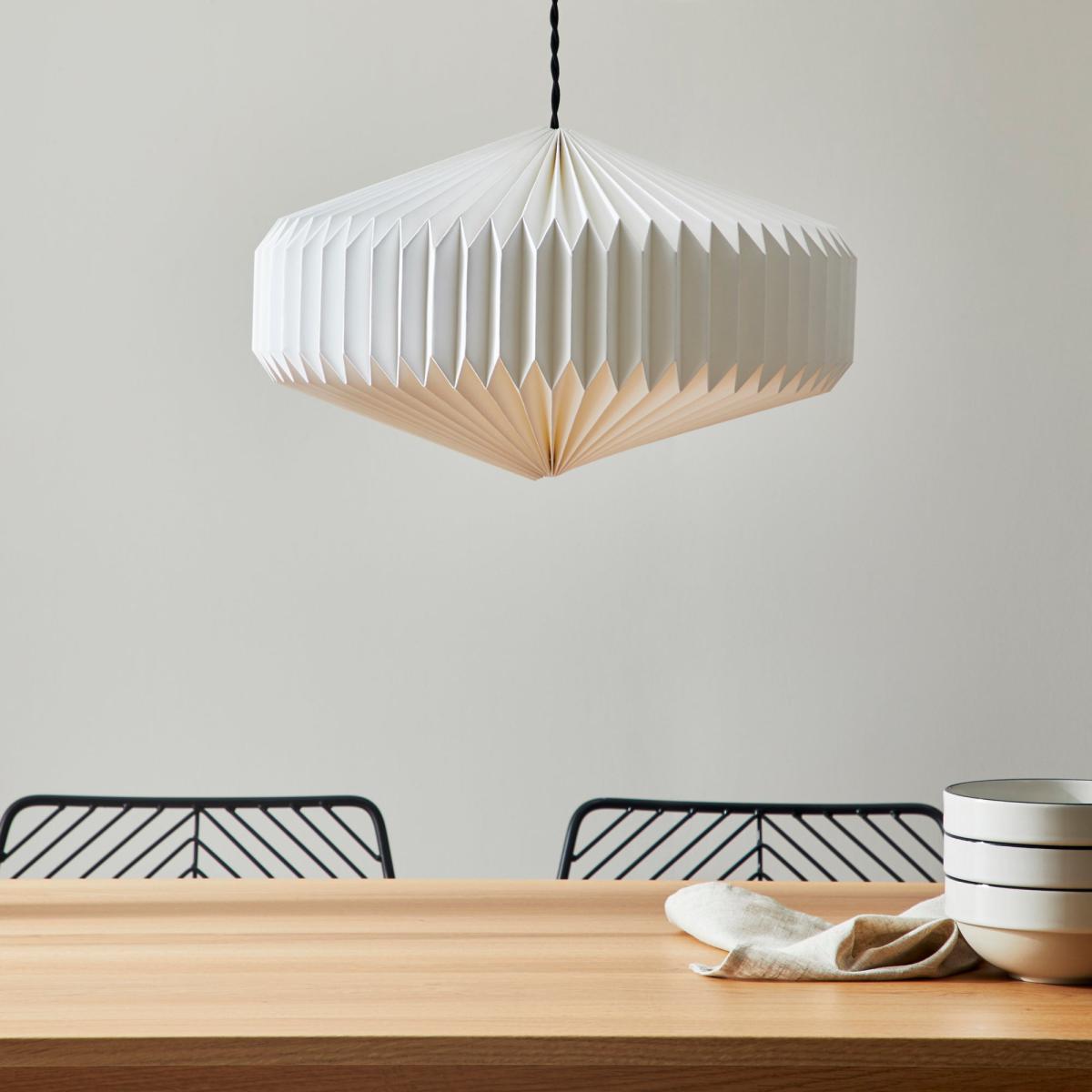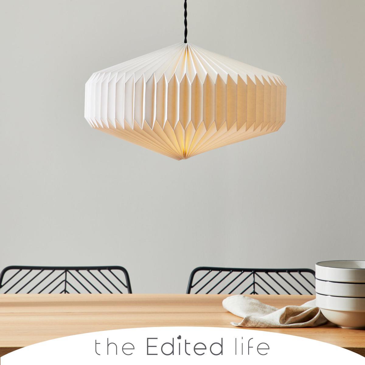 The Edited Life - Origami Paper Easy Fit Pendant. Paper is a natural material usually made from a wood base, and can be recycled at the end of its life to make more paper-based items. Versatile and familiar, the tactile qualities of paper make it a great addition to stylish, grounded homes. Live well. Mean well. Be well. Many of us want to live simpler lives, to reduce our impact on the environment, and improve our wellbeing. As we become more aware of our surroundings and understand how our choices contribute to the world around us, more people are choosing to consume less and curate more. The Edited Life introduces a new era of thoughtfulness in the home, with an understated collection of pieces chosen for their simple beauty, quality craftsmanship and innate usefulness that will last beyond any trend. Having it all is no longer the goal; having enough, and it being just right, is.