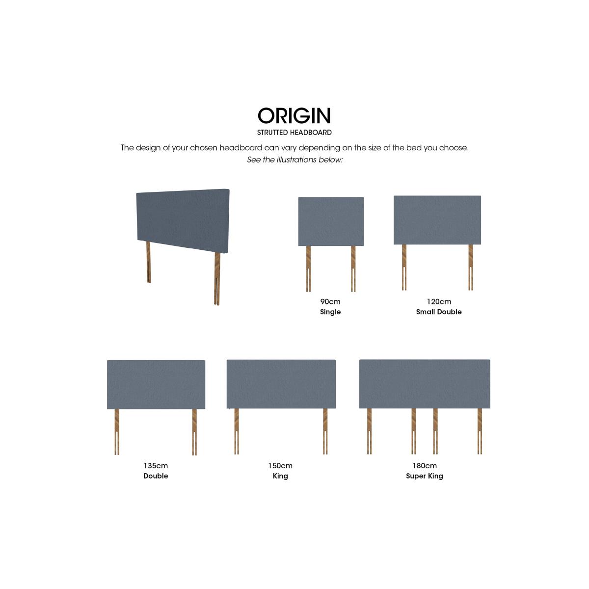 Discover The Artisan Collection, designed to bring handcrafted luxury and style to your bedroom. This premium range includes a selection of divan bases – from traditional platform tops offering a firmer feel to sumptuous pocket sprung options for enhanced mattress comfort. Many divan bases are available with storage drawers, in both standard and on-trend shallow designs. Complement your divan with one of the collection’s striking floor-standing headboards, including standout winged designs. Each piece in The Artisan Collection is beautifully upholstered in a wide choice of luxury fabrics and handcrafted in the UK, ensuring exceptional quality and elegant style for your sleep sanctuary. In an understated fashion, this handcrafted strutted headboard creates a stylish focal point in any bedroom. Available in a wide choice of fabrics. Why you'll love it Modern and elegant, this headboard is a study in restraint. Beautifully upholstered for a luxurious look. Made with sustainable FSC-sourced wood. In a choice of beautiful fabrics. Handcrafted in the UK. Also available as a floor standing headboard. Find the Origin standard strutted headboard only at Furniture Village. What you need to know This strutted headboard is supplied with bolts to attach it to a divan base. Available in single, small double, double, king and super king sizes. 130 cm tall. Clean regularly using a soft brush or vacuum with the curtain attachment. Deal with any spills promptly. Professional cleaning advised for oil- and grease-based stains. Some fabrics can show wear on areas of more use or in direct sunlight. Item code: ORIGH130--043