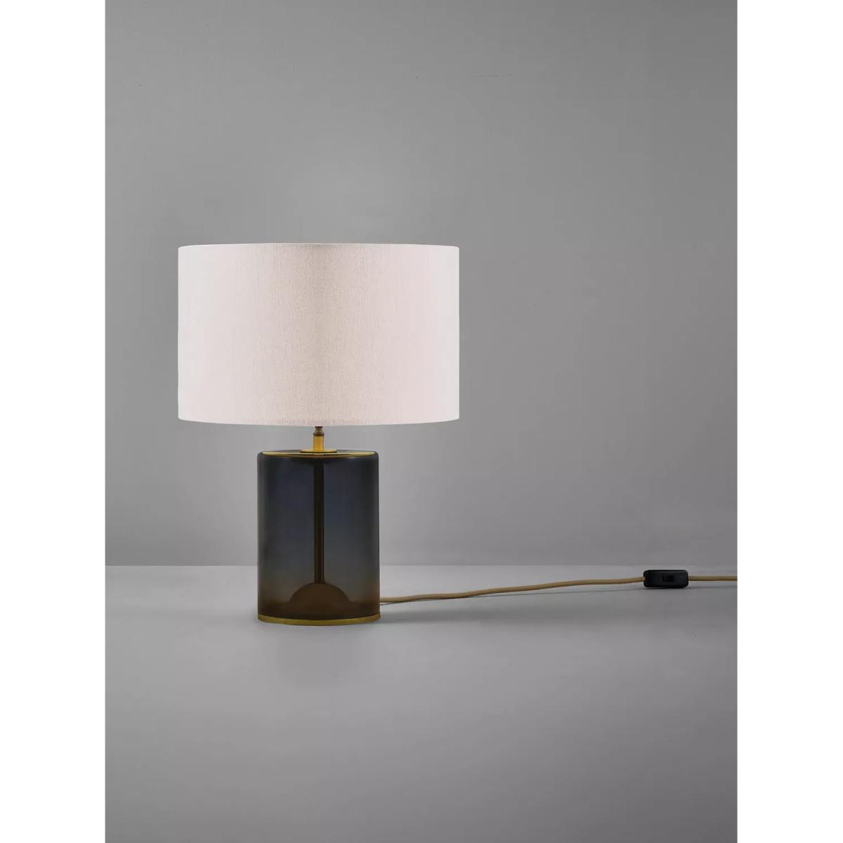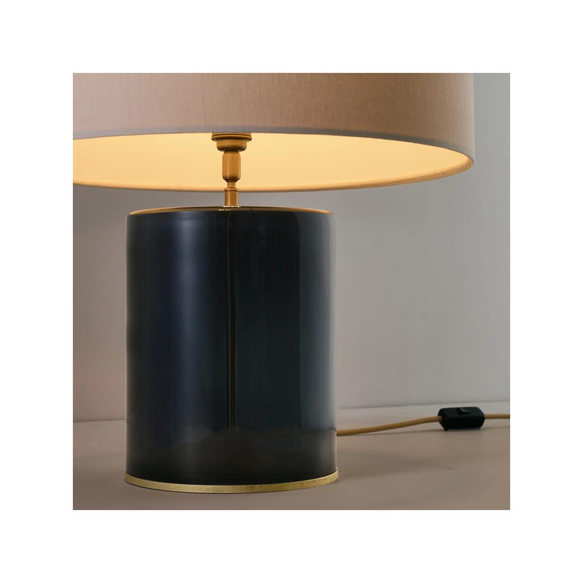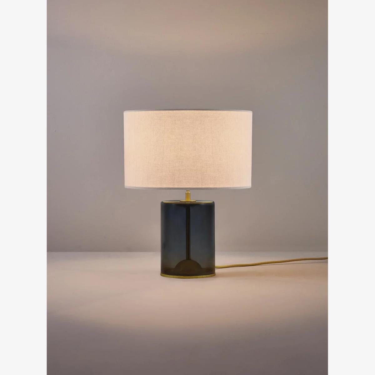 The Crosby table lamp is created with meticulous attention to detail and will elevate any interior with its fine materials and quality finishes. Its appealing form is defined by two cylindrical shapes: the sleek, mouth blown glass base and the textured linen shade. A gentle dome is ground down within the base to create a neat opening for the cotton braided cable. The Crosby also showcases a ball joint, so the shade can be easily tilted for optimal reading illumination.