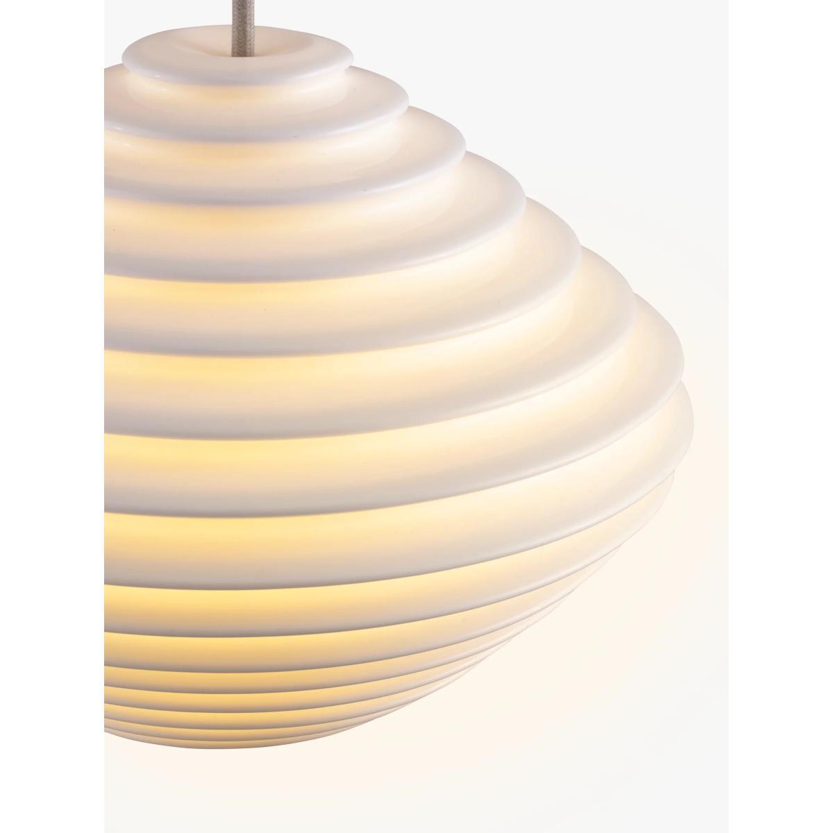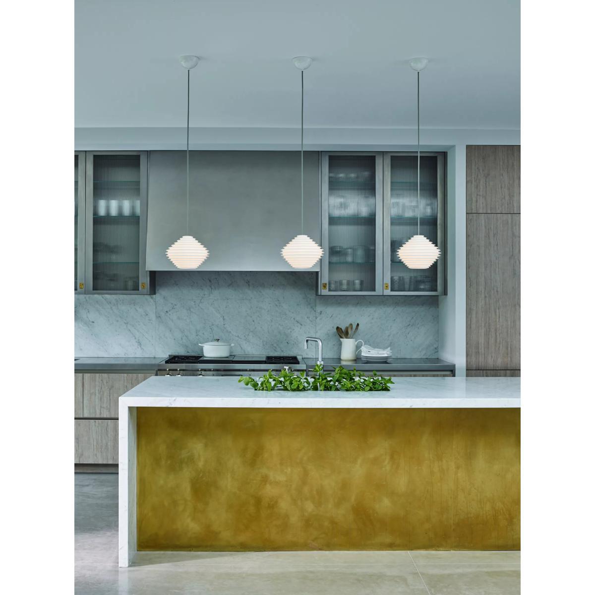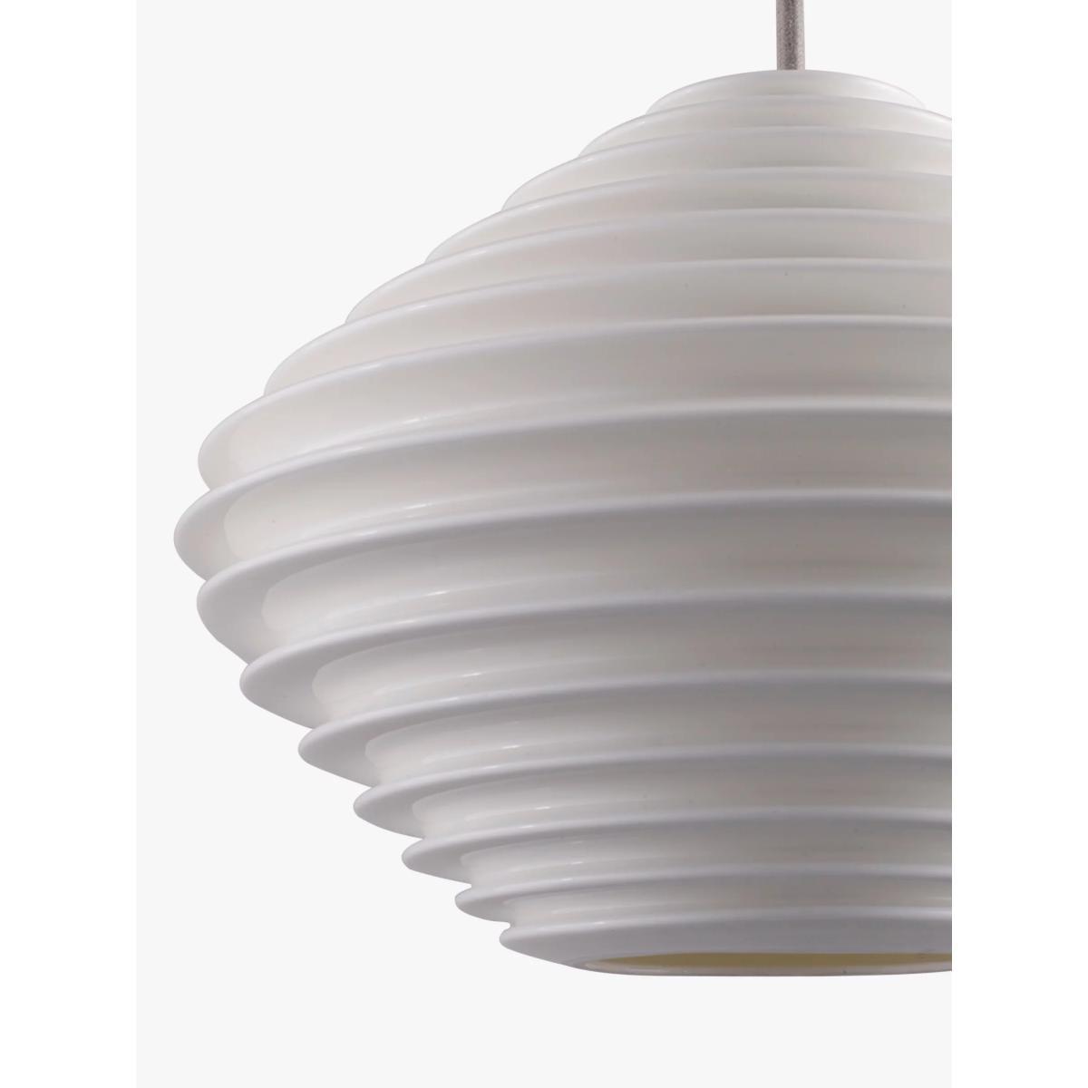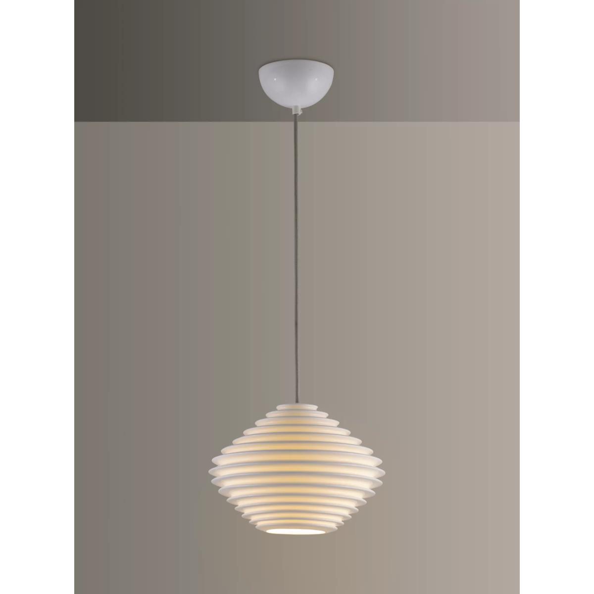 Made in the UK Inspired by organic forms and carefully moulded into an eye-catching, stacked silhouette, the Fin Horizontal Pendant from Original BTC will lend a striking addition to your home decor. When switched on, light catches on its intricate bone china shade, accentuating its natural construction. Suspended from a trademark adjustable braided flex, this ceiling light will look equally as impressive when installed individually or combined in multiples of three.