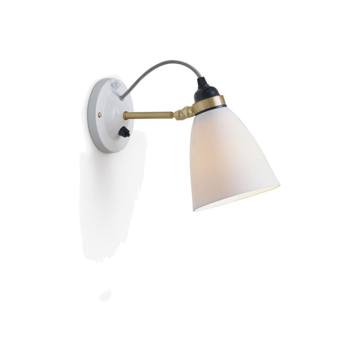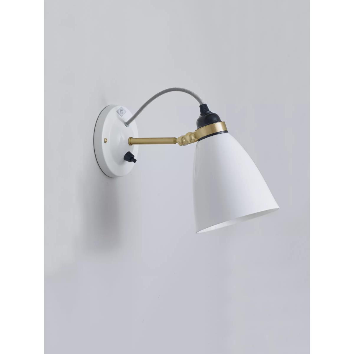 Made in the UK Marrying style and function, the Hector Dome wall light is one of Original BTC's British design classics. The shade is made from translucent bone china that's supported by a metal arm finished in either satin or brushed brass. It's easy to move the shade to provide a direct wash of warm light exactly where you need it. The switch is integrated into the wall plate for a sleek finish. More about the design process The bone china used on this wall light has been manufactured by a highly-skilled team in a ceramic factory in Stoke-on-Trent. It has been biscuit fired or dipped in a glaze and gloss-fired to create the natural white finish.
