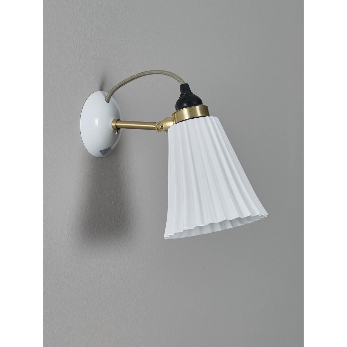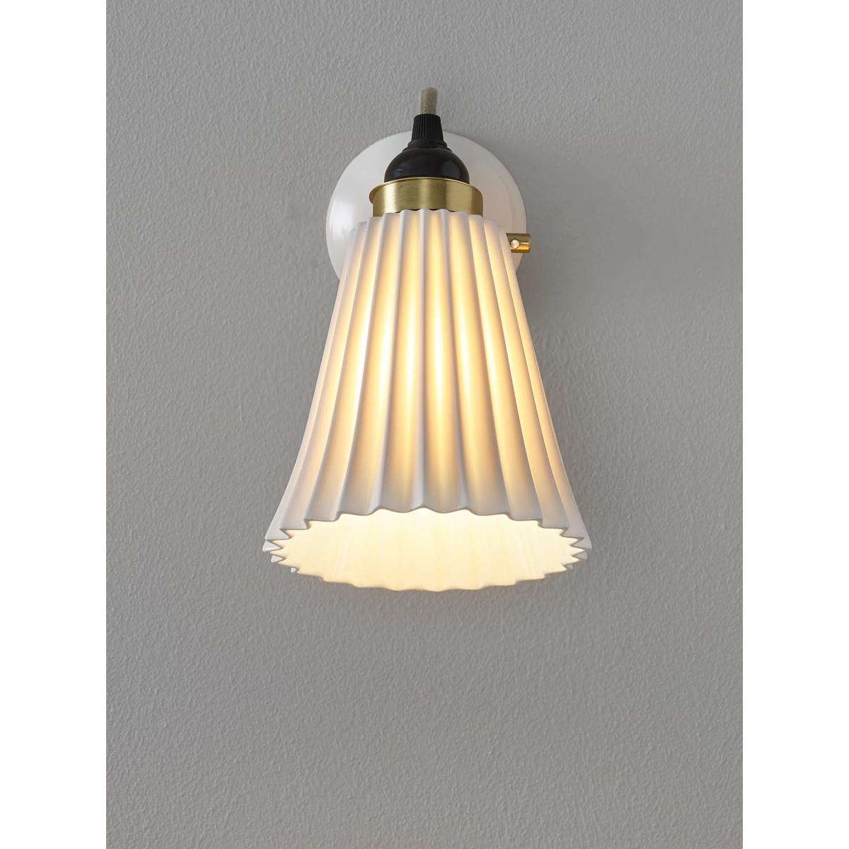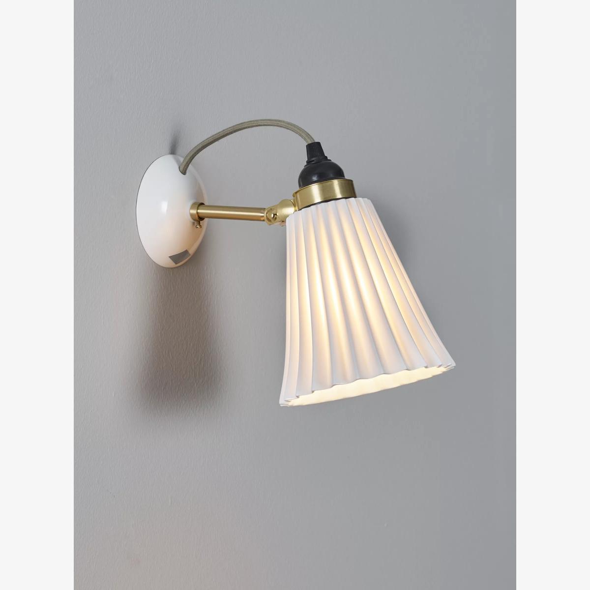 Skillfully crafted from bone china, the architectural shade of the Hector Pleat wall light offers a warm ambient glow when lit. Its cotton braided cable matches beautifully, creating the perfect combination of style and function.