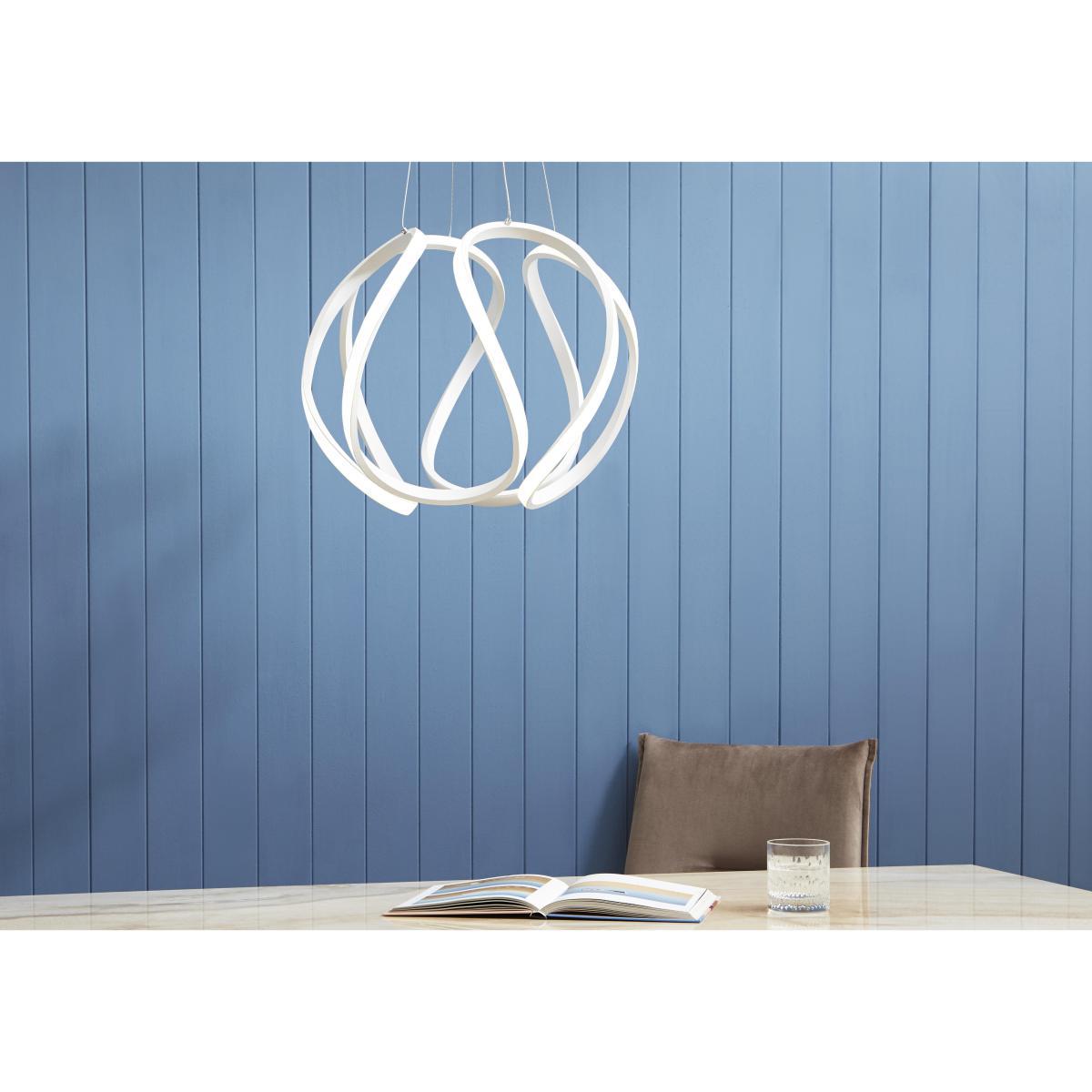 Create the ‘wow’ factor with the modern and sculptural Orin large pendant ceiling light. This glamorous contemporary light provides soft and even lighting with LEDs, which form a single band that loops boldly and confidently. Even when it’s not lit, the sculptural form is decorative in its own right. The Orin LED large pendant light is suspended by tension steel cable from a round polished chrome ceiling plate and is height adjustable on fitting. Dimensions. Width diameter: 52cm (20in). Height: 50cm -125cm (20in – 49in).
