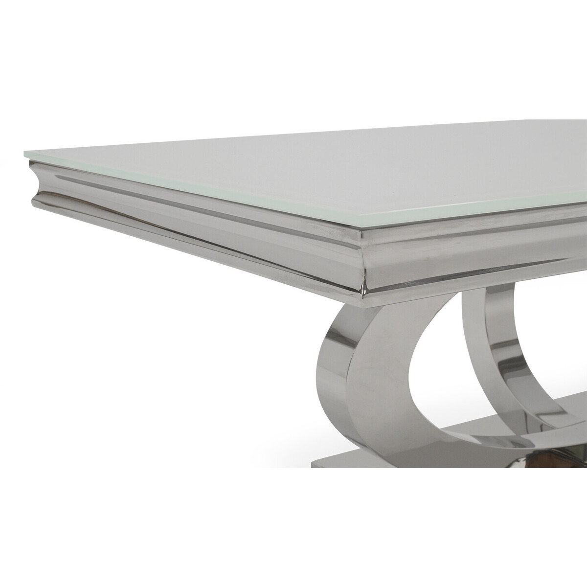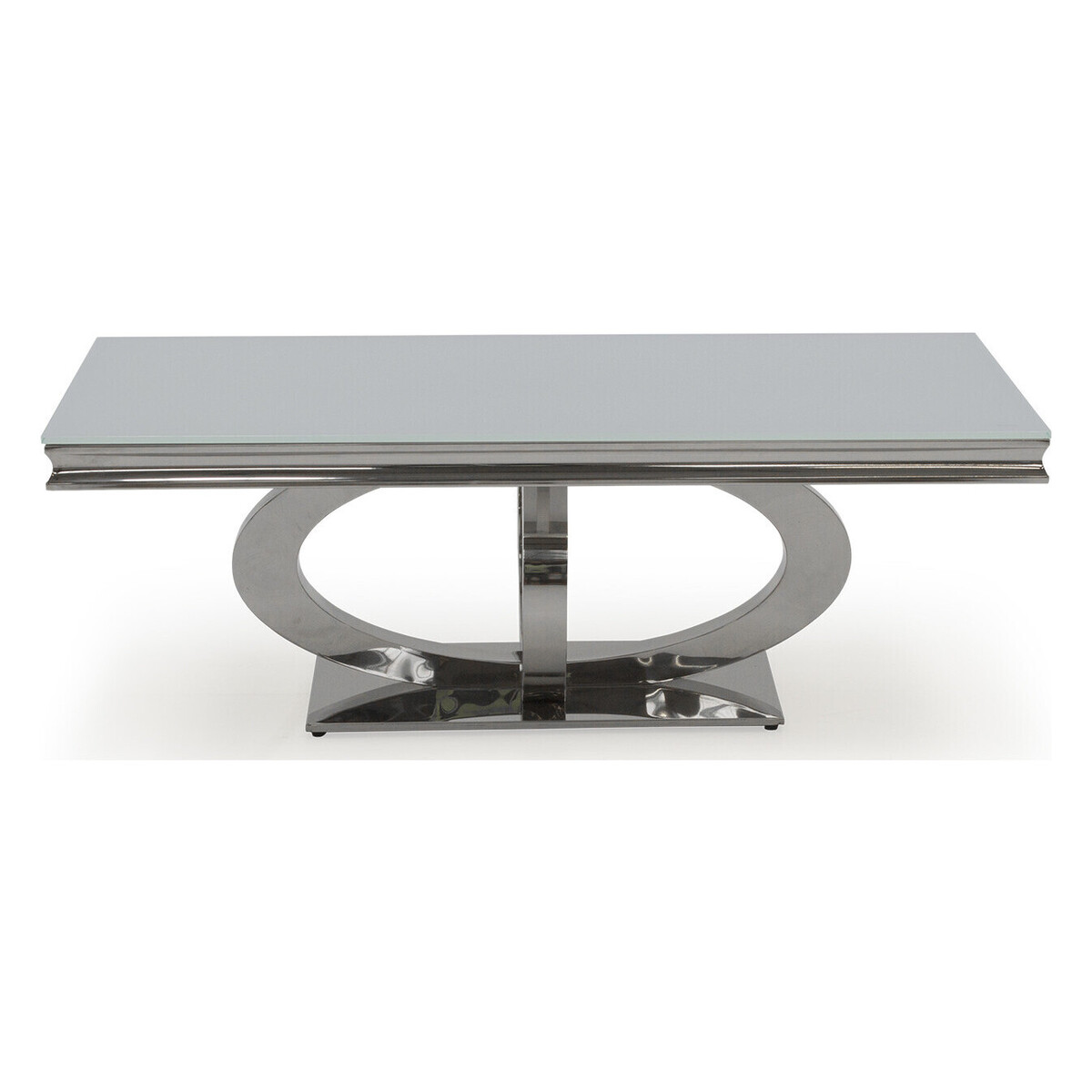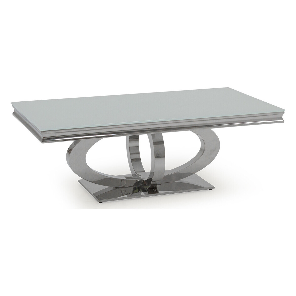 The eye-catching Orion coffee table is crafted using steel and tempered glass, creating a sleek and contemporary look that will modernise any living space. The sturdy polished steel base complements the high shine of the white tempered glass and it's generous size (1300mm) ensures there's plenty of space for your items. Other items available in the Orion range. Crafted using steel and glass. Beautiful contemporary piece of furniture. 12 month guarantee.