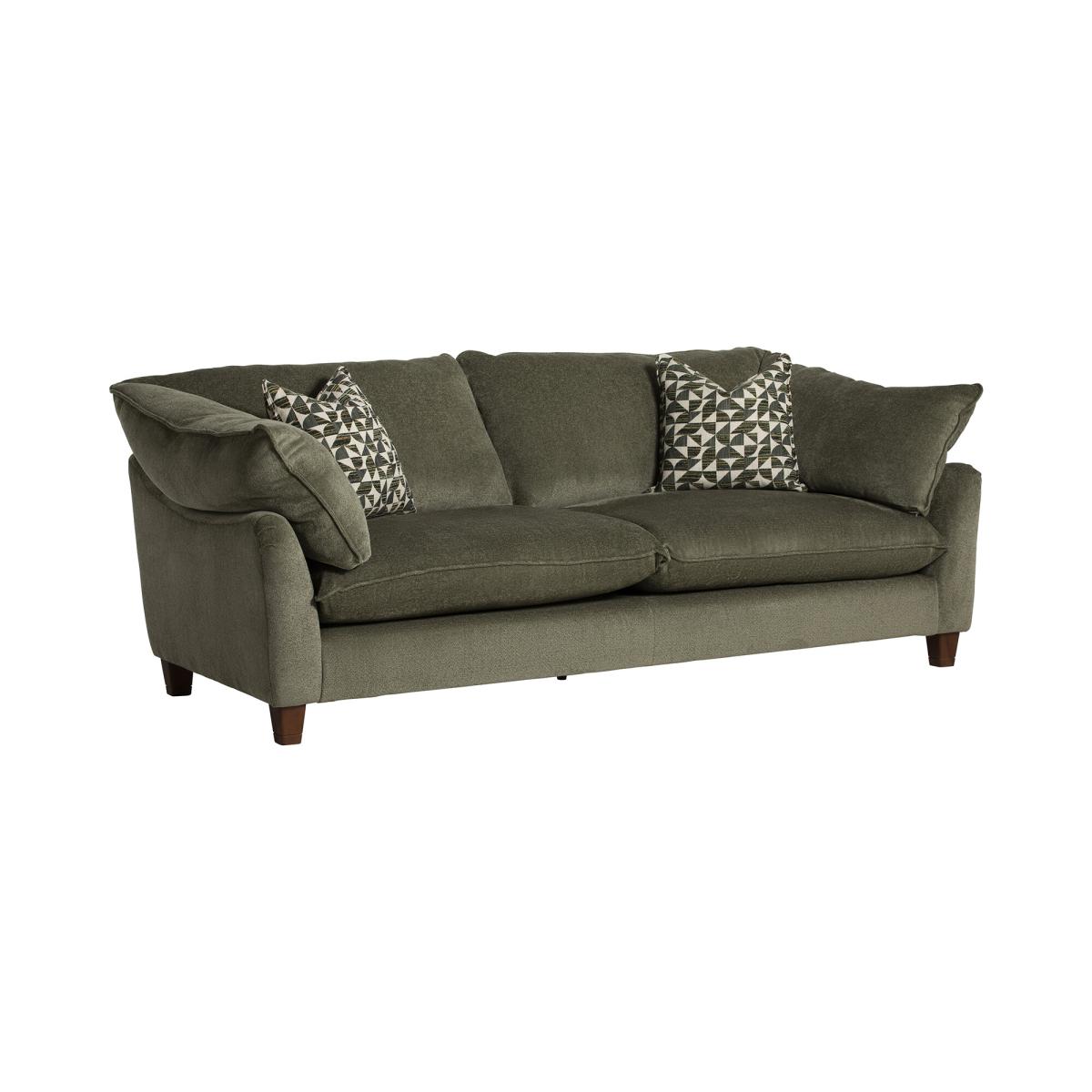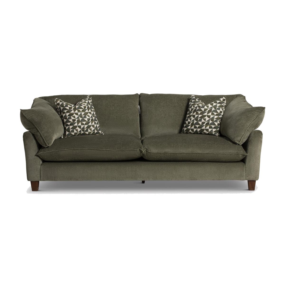 Indulge in the ultimate luxury and comfort with our Fabric 4 Seater Grand Sofa, a masterful blend of sophisticated design, exceptional craftsmanship, and supreme comfort. This grand sofa is the perfect centrepiece for any living room, offering ample seating space, plush cushioning, and a timeless aesthetic. The seat cushions feature a feather and fibre-filling blend, achieving the perfect balance of plushness and support. This combination ensures that each seat provides a soft yet resilient comfort, ideal for relaxing or entertaining. Crafted with durability in mind, the frame of the sofa is constructed from hand-picked, fully seasoned hardwoods sourced from managed forests. Experience unparalleled relaxation and sophistication with this exceptional piece of furniture
