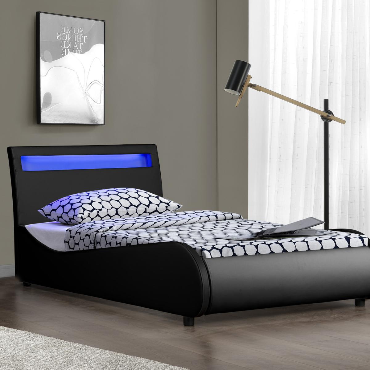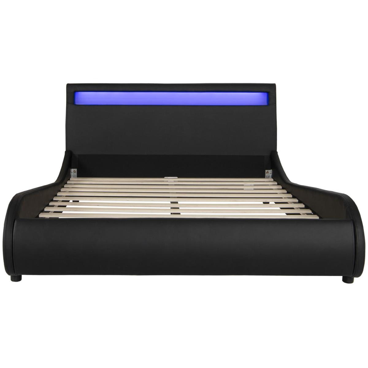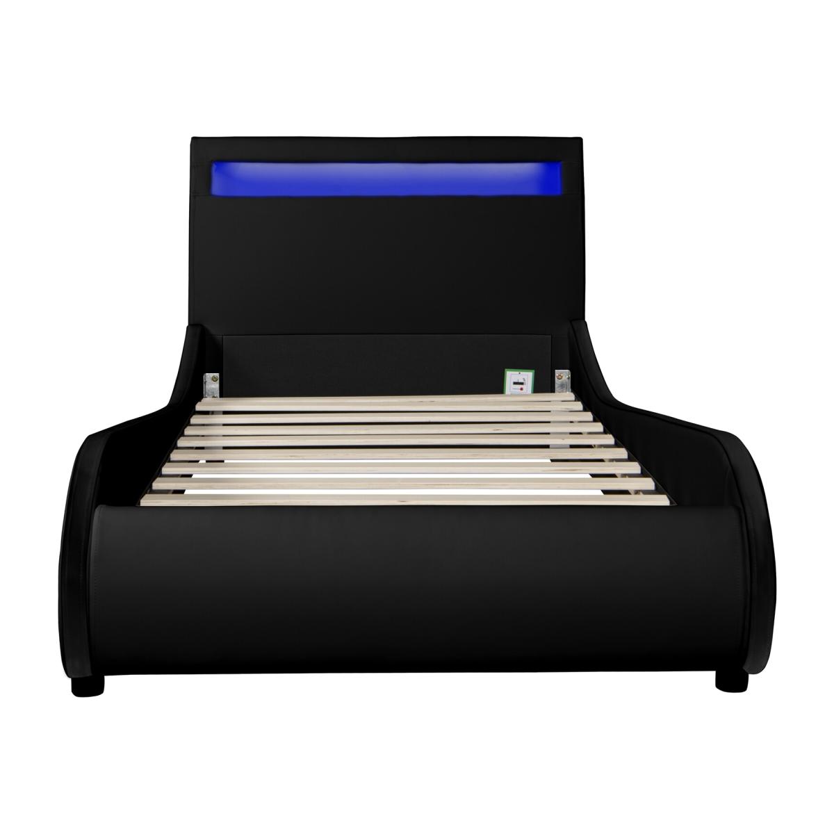 Orion LED Lights Headboard Faux Leather Bed Frame - Black / Small Double