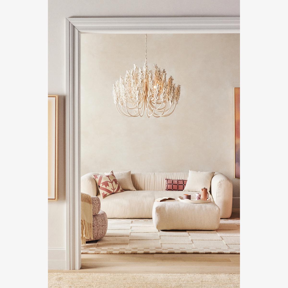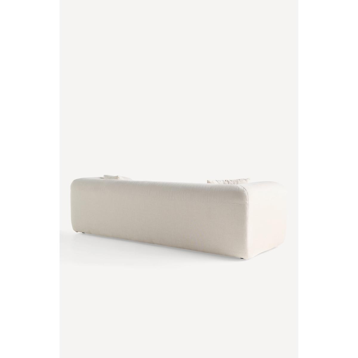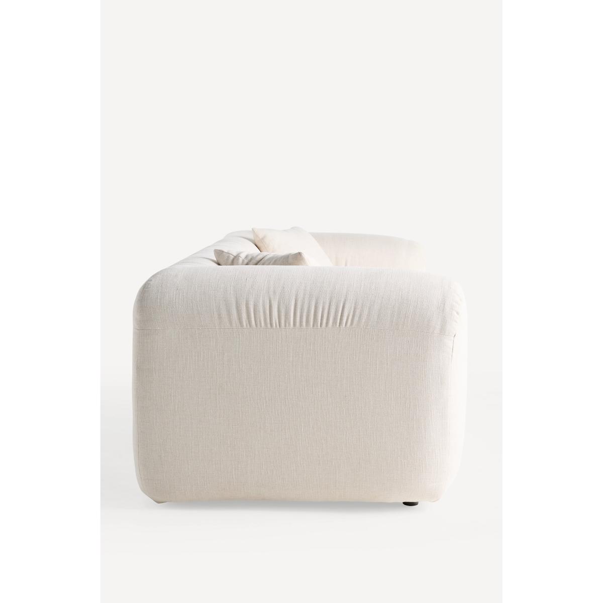 Linen upholstery, a low-profile, rounded silhouette, and overstuffed cushions make the Orion Velvet Sofa the ideal place to kick back and relax. * Valencia linen upholstery * Cushion content: foam & fiber * Includes two throw pillows * Sinuous spring seat construction * Kiln-dried hardwood frame * Turned legs * Professionally clean * This item is intended for indoor use * No assembly required * Imported