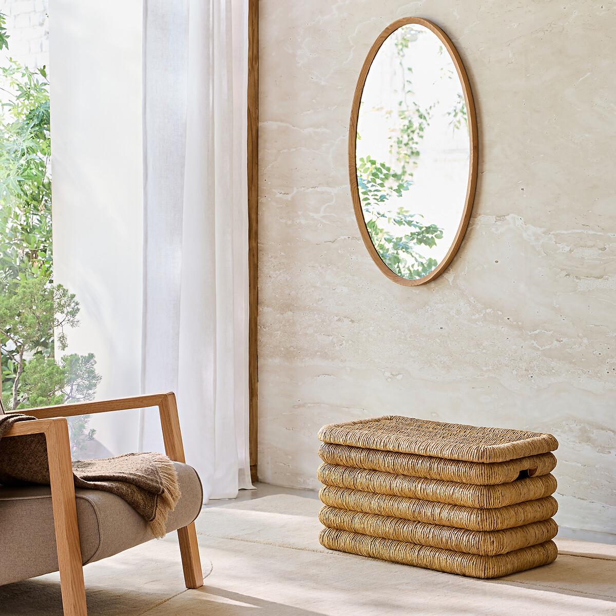 I love the way the Orion mirror combines simplicity with a touch of warmth, thanks to its solid oak frame. It’s versatile enough to work in various settings, from bedrooms and hallway alcoves to living rooms or bathrooms with a neutral or contemporary aesthetic. The oval shape softens the overall look, making it a great alternative to traditional circular or rectangular mirrors. For styling tips, consider leaning it against a feature wall for a casual, laid-back look or hanging it above a console table for added visual interest and light reflection. Pair it with natural materials, like rattan or linen, to enhance its earthy vibe or keep it minimalist for a sleek, modern statement.