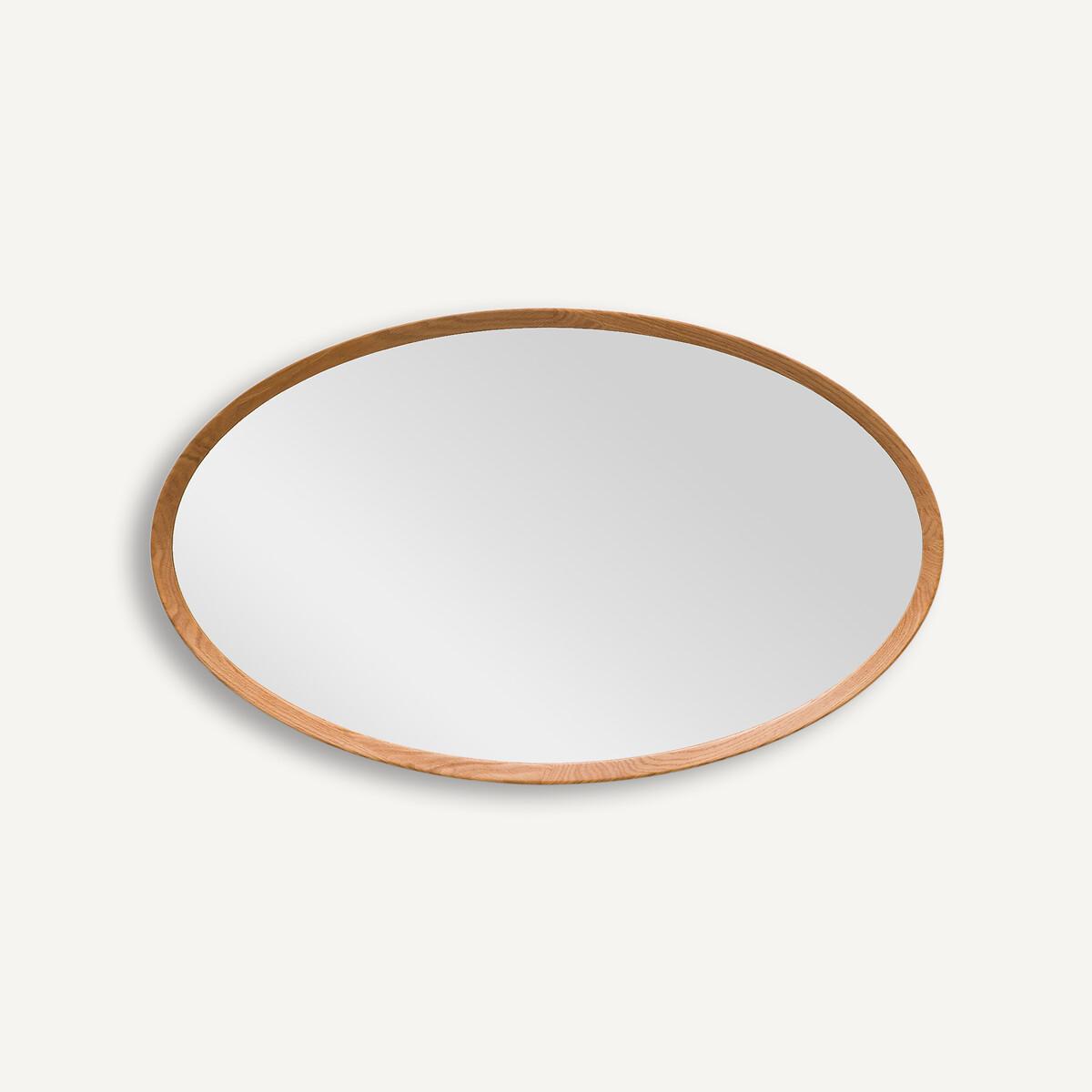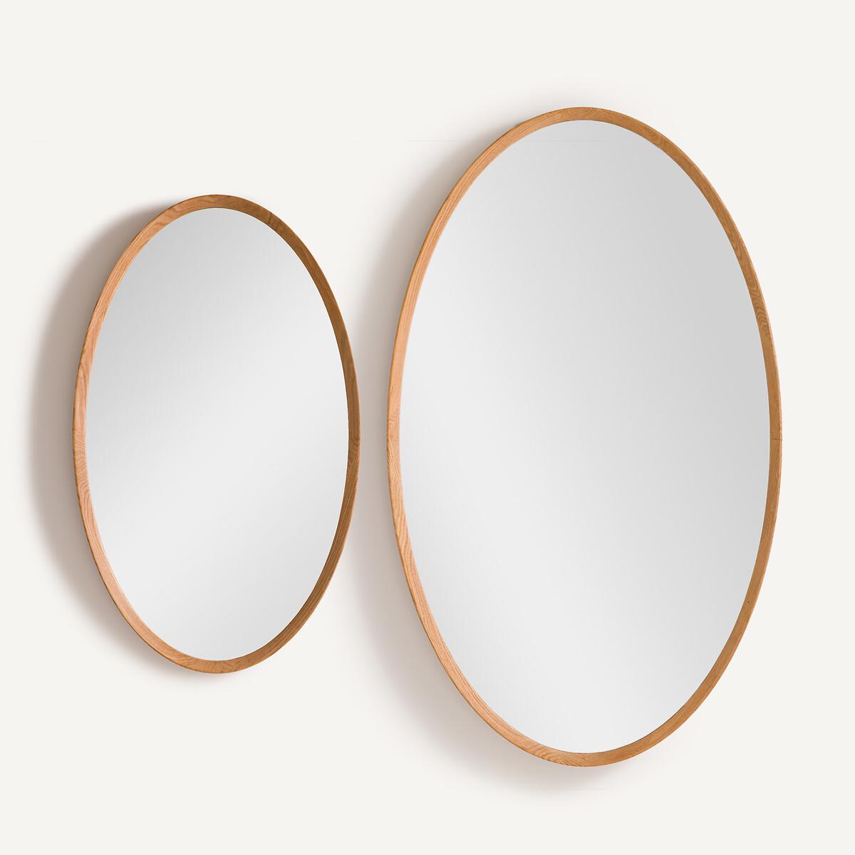 Solid oak, bevelled edges... the Orion oval mirror is characterised by the simplicity of its organic design, perfectly enhanced by the softness of its curves. You can hang it vertically or horizontally. Product Details • Solid oak with natural finish • Bevelled edge • Can be hung horizontally or vertically (screws and plugs not supplied)Dimensions • Width: 100cm • Height: 60cm • WOOD FROM SUSTAINABLY MANAGED FORESTS. FSC® certified wood comes from forests that are environmentally, socially and economically well managed. Dimensions and weight of parcel1 parcel • L110.5 x H70.5 x D13.5cm, 14kg