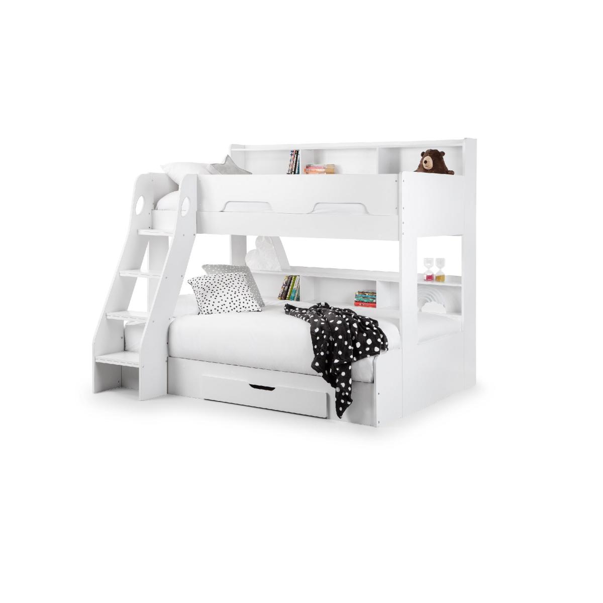 * Contemporary, innovative bunk bed* Includes a handy pull-out drawer and extensive shelving* Sleeping space for up to 3 children or adult The Orion Triple Sleeper is not your average bunk bed. With its contemporary design and innovative features, this bunk bed offers sleeping space for up to 3 children or adults. Its handy pull-out drawer, and extensive shelving make it a stylish and functional addition to any bedroom.