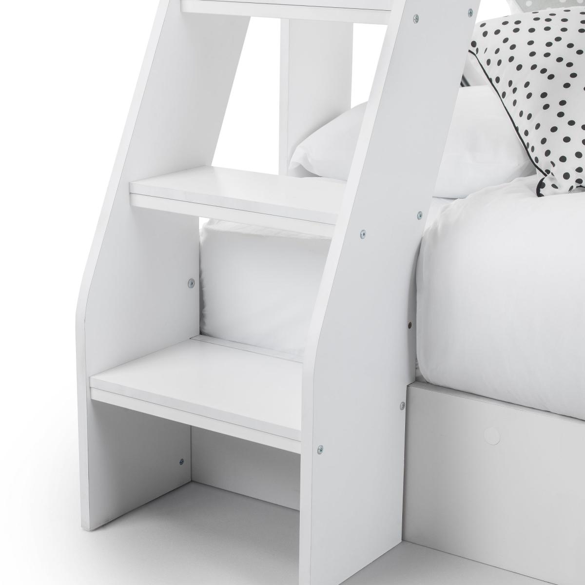 I’m a fan of the Orion triple bunk for anyone needing maximum sleeping capacity in a compact footprint. Its clean white finish slots straight into contemporary, Scandi or coastal-inspired schemes, while the built-in shelves and under-bed drawers keep clutter at bay. Styling tip: layer in soft textiles - think pastel or muted geometric-print throws and cushions - to add depth without overwhelming the space. Use minimal, wall-mounted lights at each level and weave in matching storage baskets on the lower shelves to keep toys and books organised.