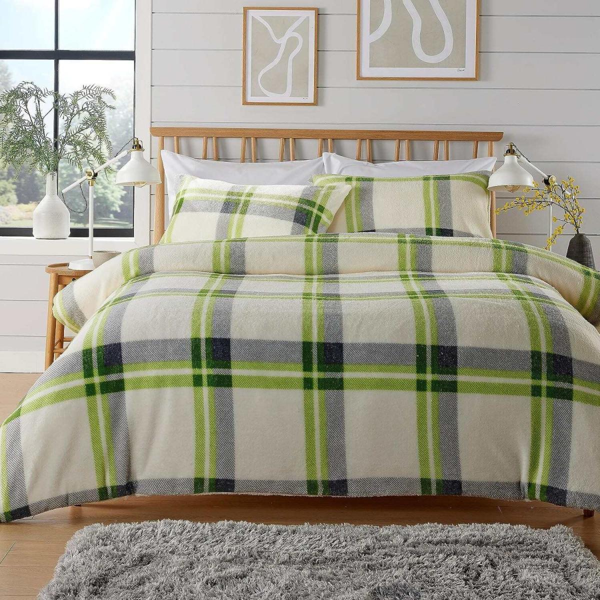 Orkney Check Printed Fleece Duvet Set - Green / Single
