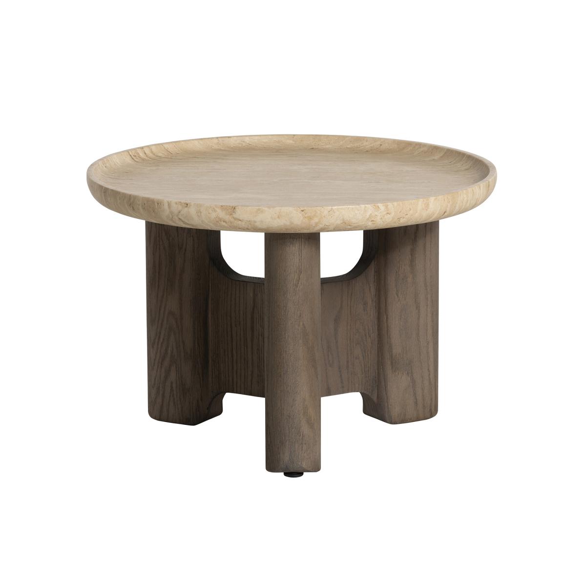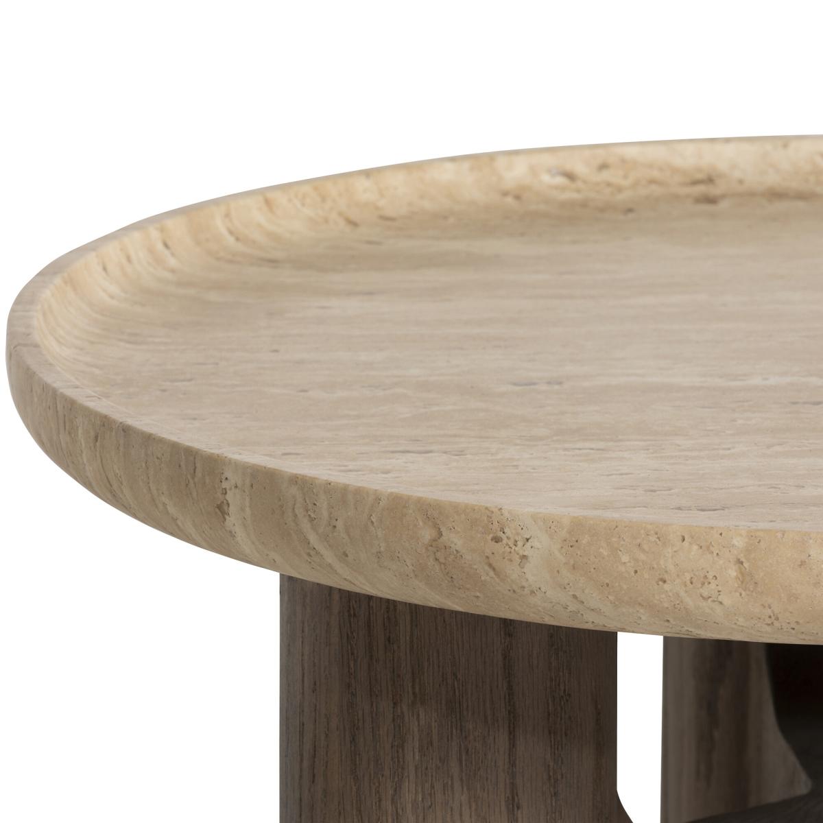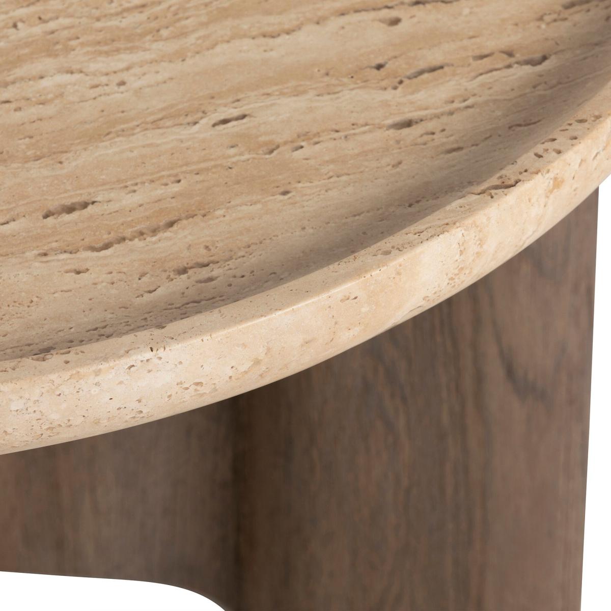 The Orkney Circular Stone Top Coffee Table, 60x40cm, combines modern sophistication with practical design. Its neutral travertine top offers a durable and elegant surface, ideal for holding your coffee, favorite magazines, or decorative pieces. The weathered hazel wood base adds warmth, while hidden metal feet provide stability with a seamless finish. Perfect for smaller spaces, this compact coffee table brings a stylish and functional touch to your living area.