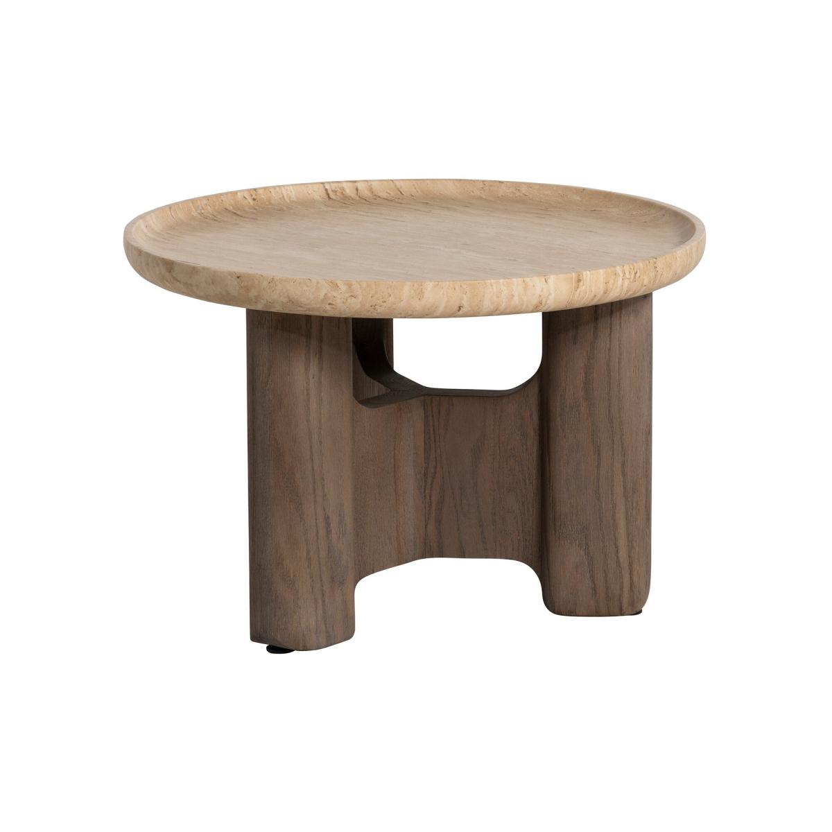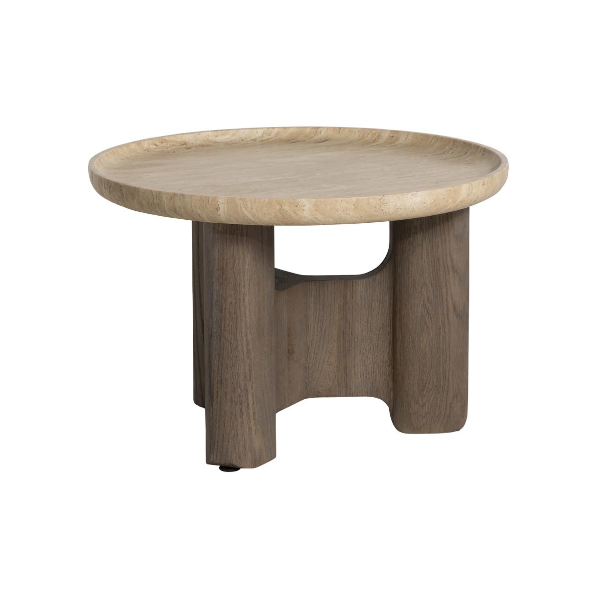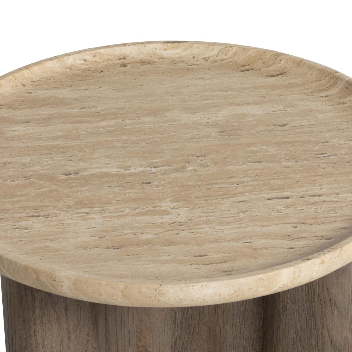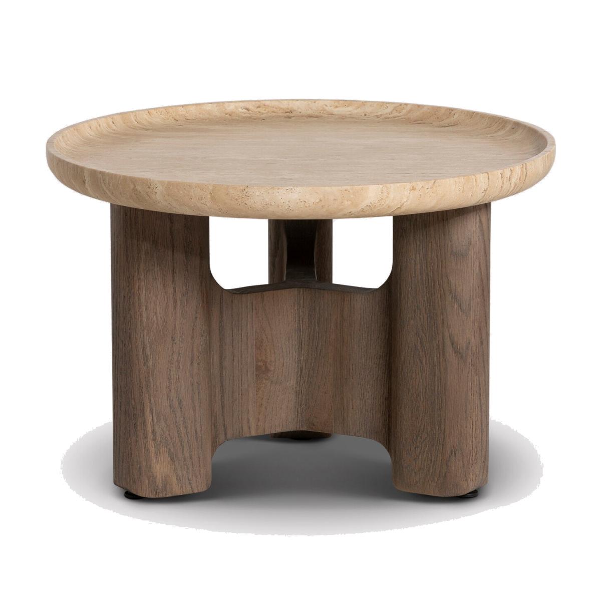 The Orkney Circular Stone Top Coffee Table, 60x40cm, combines modern sophistication with practical design. Its neutral travertine top offers a durable and elegant surface, ideal for holding your coffee, favorite magazines, or decorative pieces. The weathered hazel wood base adds warmth, while hidden metal feet provide stability with a seamless finish. Perfect for smaller spaces, this compact coffee table brings a stylish and functional touch to your living area.
