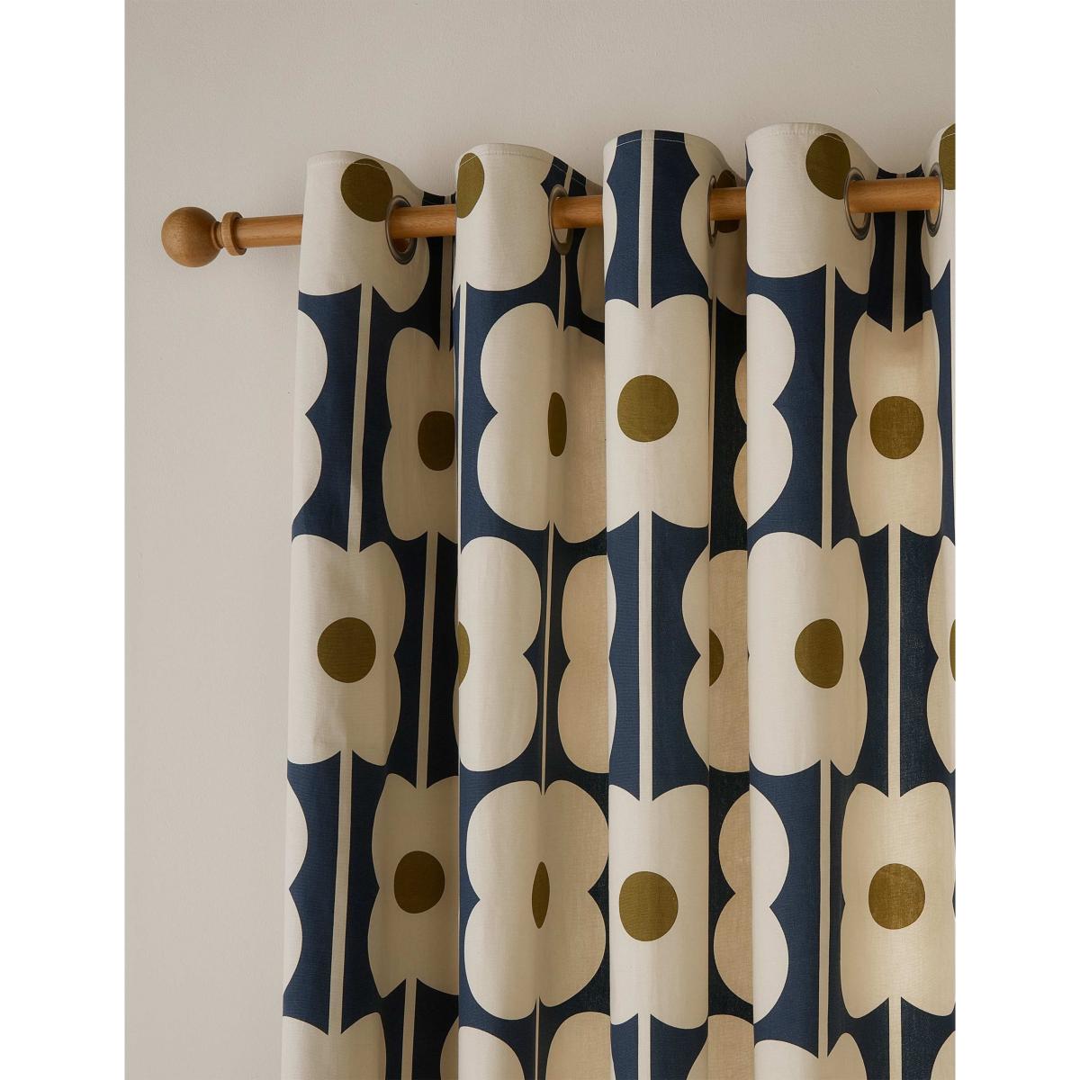 Orla Kiely Abacus Flower Pure Cotton Eyelet Curtains Navy Mix