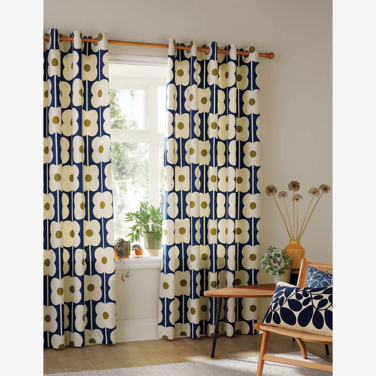These Orla Kiely curtains feature modern, mid-century-inspired florals that will bring a fun feel to your home. They're crafted from pure cotton with a neat eyelet header and a cotton-blend lining featuring the brand's signature Linear Stem design.