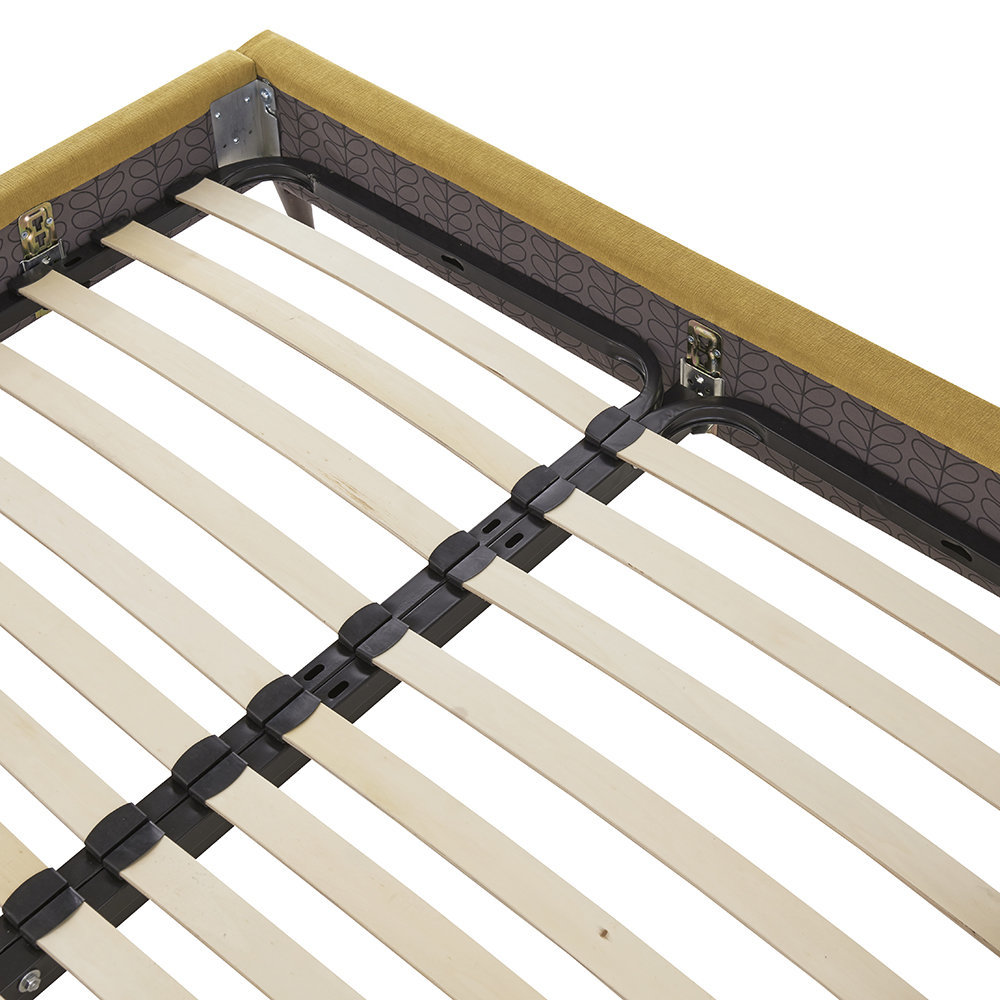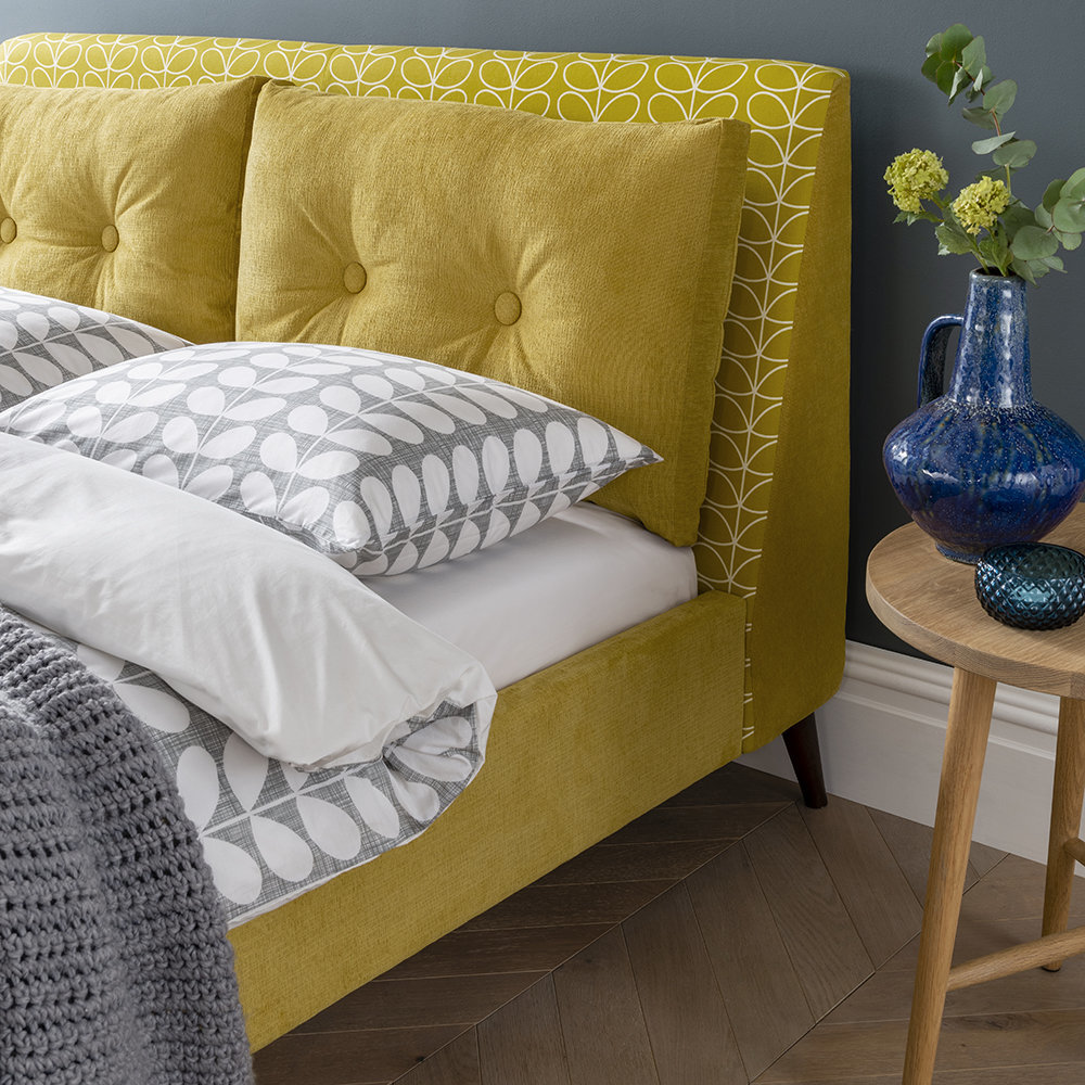 Style never sleeps, but you can sleep in style thanks to the Alexa Bed from Orla Kiely. Featuring the iconic Linear Stem print on the front of the headboard, this bed will add a style statement to your bedroom. Crafted from hardwood, the bed frame features sprung beech wood slats with a central support rail for stability. The sectional pieces easily slot together with the bolts provided, and the legs are crafted from American walnut. Available in three sizes, please note this bed frame does not include the mattress.
