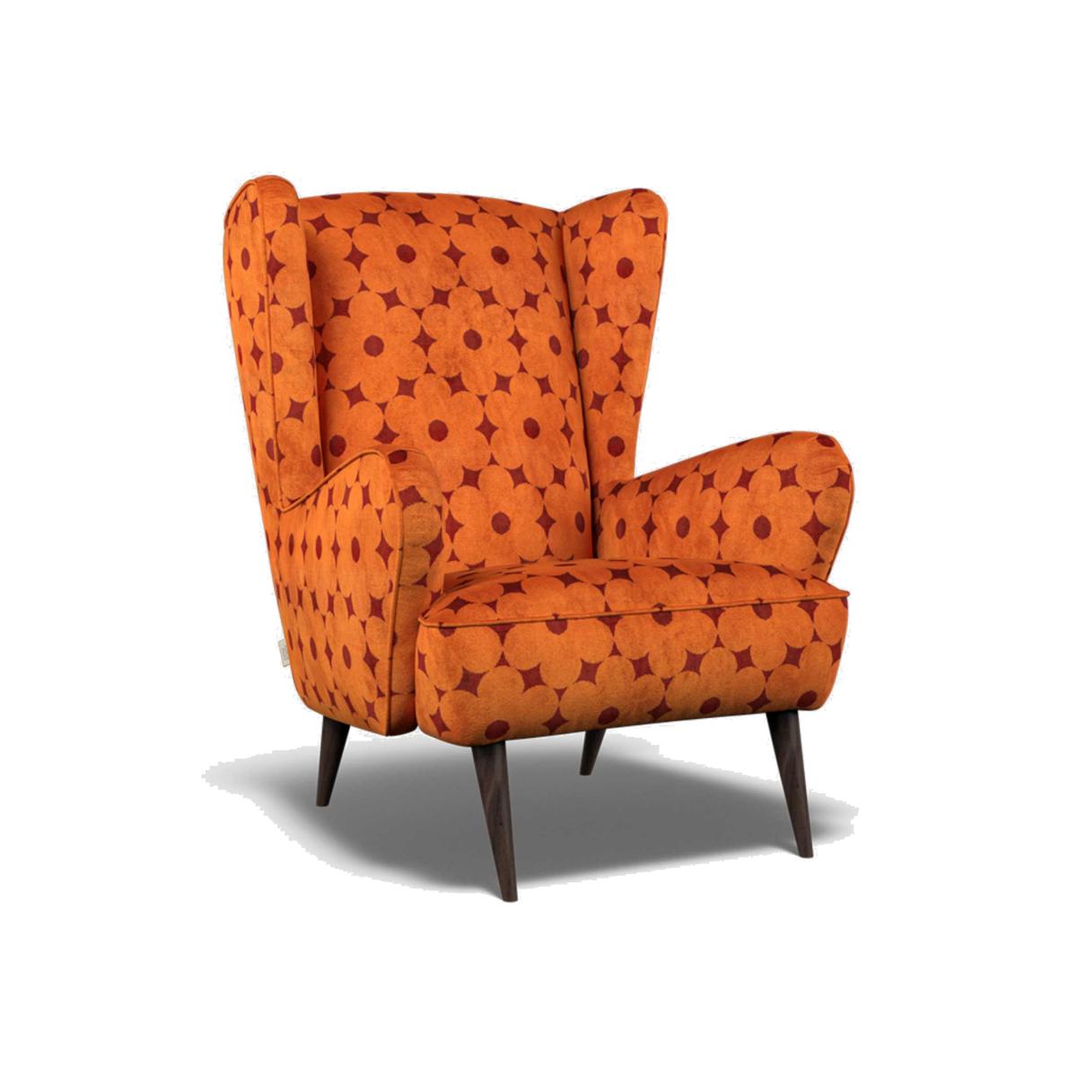I love this armchair’s bold, retro-inspired pattern, which makes it a real statement piece. It’s versatile enough to work well in eclectic, vintage, or contemporary interiors - especially when you want to add a pop of colour and personality. The rich orange tone pairs beautifully with neutral palettes or complementary shades like deep blues or slate greys. For styling tips, try keeping surrounding furniture simple to let the chair shine or mixing it with other textured fabrics for a layered look. Its classic silhouette also means it fits comfortably into both cosy living rooms and stylish reading nooks. Just make sure to keep the fabric protected with appropriate treatments if you plan to use it frequently in high-traffic areas.