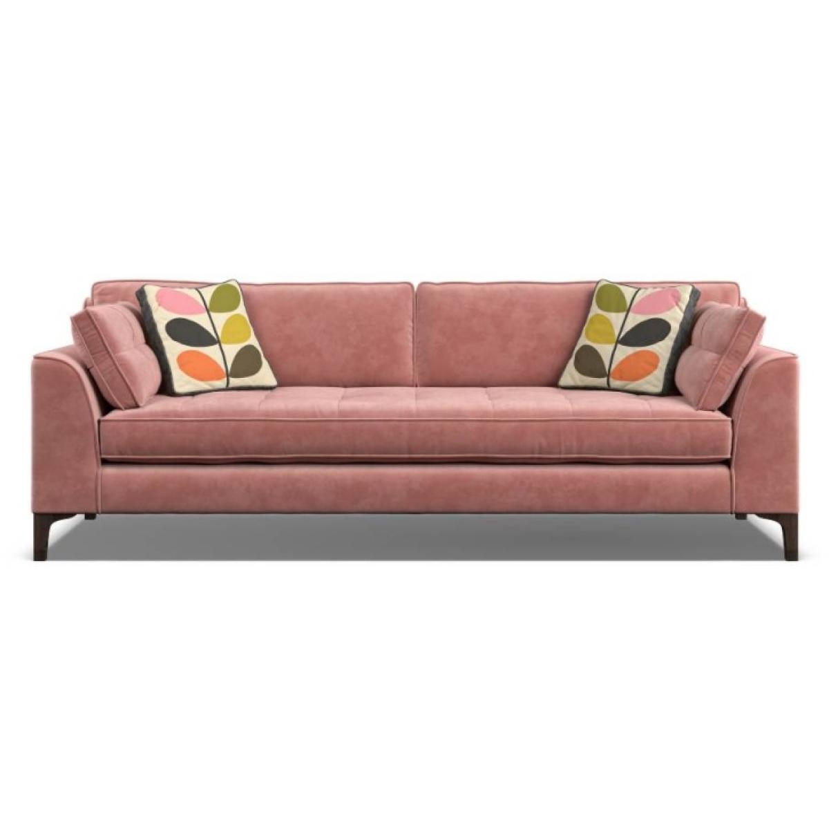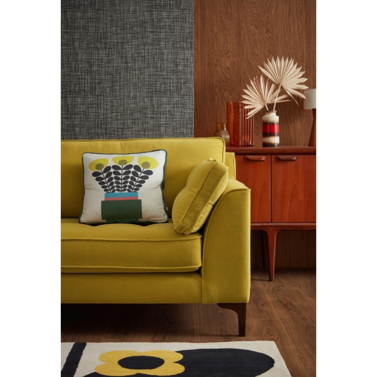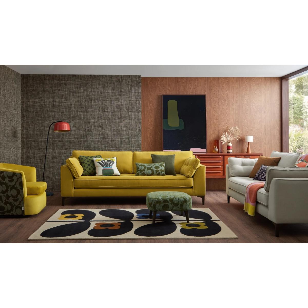 The Orla Kiely Arklow Extra Large Fabric Sofa. Bring a bold splash of retro sophistication into your living space with the Orla Kiely Arklow Extra Large Fabric Sofa. A true statement piece, this sofa blends the designer’s signature mid-century aesthetic with modern comfort, making it perfect for those who love standout style without compromising on practicality. Upholstered in premium, soft-touch fabric with vibrant color options and a textured weave, the Arklow exudes warmth and character. The extra-large size offers generous seating space—ideal for family lounging or entertaining guests—with deep cushions and supportive arms designed for all-day relaxation. Finished with sleek, tapered legs and subtle button-back detailing, the Arklow captures the playful charm and timeless appeal that defines Orla Kiely’s design ethos. Whether it’s the centerpiece of a modern home or an eclectic addition to a classic interior, this sofa delivers comfort with undeniable flair. Arklow Extra Large Sofa in main image is shown in Clara Sunflower Fabric. Features: 15 year guarantee on all hardwood frames and steel springs. Available in a wide range of bright velvets and textured fabrics, plus scatters of your choice. Available in plain all over fabrics. Dimensions: Height 84cm Width 236cm Depth 100cm Arm height: 65 cm Seat height: 46 cm Seat depth: 62 cm All screens vary in colour reproduction and whilst every effort has been made to display the colour as accurately as possible it is for guidance only.