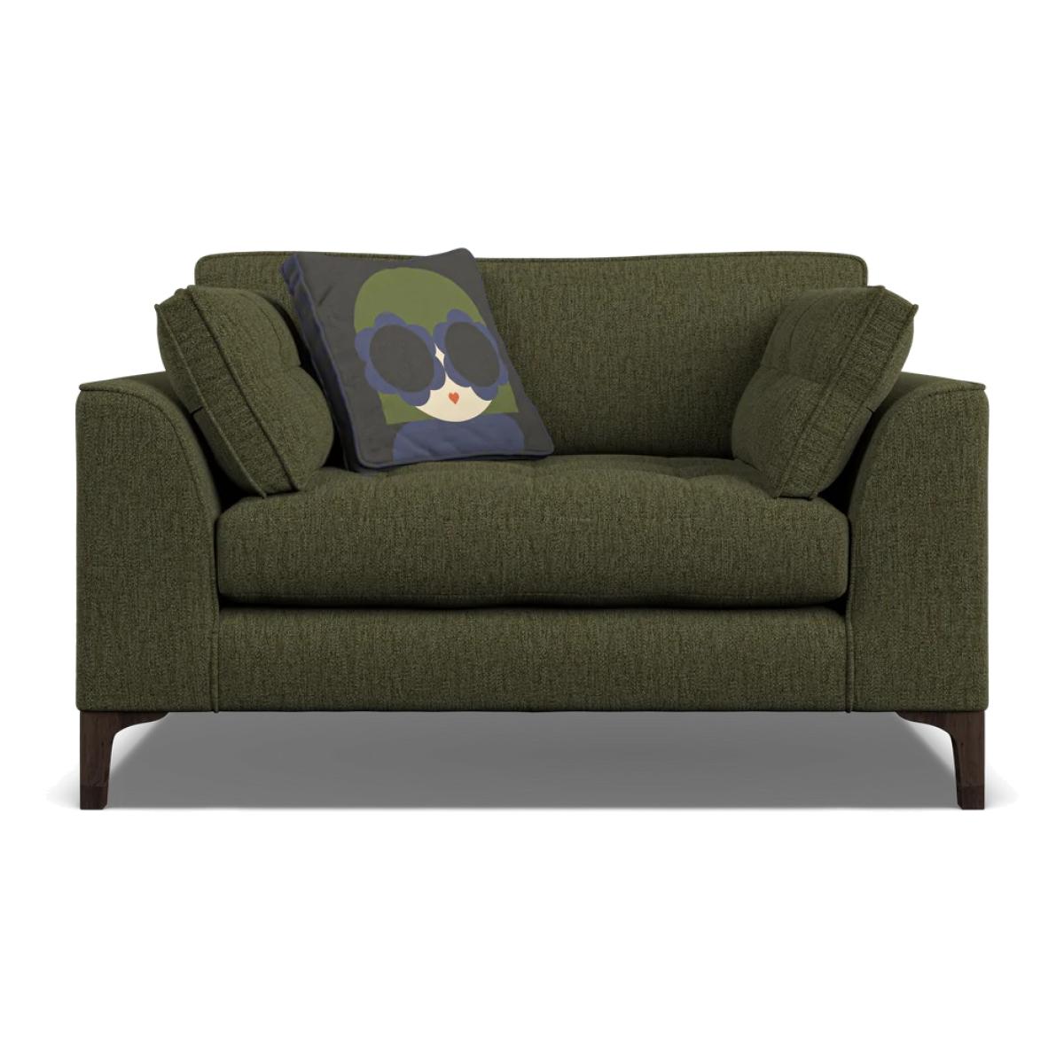 Orla Kiely Arklow Fabric Snuggler – Iconic Design, Cozy Comfort Wrap yourself in retro-inspired comfort with the Orla Kiely Arklow Fabric Snuggler. Designed for those moments when a standard armchair just isn’t enough, this generous snuggler offers a perfect blend of style, space, and softness. Whether you're curling up with a book or sharing a seat with someone special, it delivers the ideal combination of intimacy and relaxation. Featuring Orla Kiely’s unmistakable bold patterns and signature color palette, the Arklow Snuggler makes a striking focal point in any room. Upholstered in high-quality woven fabric and supported by sleek, solid wood legs, it’s built to be as enduring as it is eye-catching. Mid-century inspiration meets modern living in this statement piece—a must-have for design lovers seeking comfort without compromise. Main Image shown the Arklow Snuggler in Blythe Dark Moss Features: 15 year guarantee on all hardwood frames and steel springs. Available in a wide range of bright velvets and textured fabrics, plus scatters of your choice. Available in plain all over fabrics. Dimensions: Height 84cm Width 136cm Depth 100cm Arm Height 65cm Seat Height 46cm Seat Depth 62cm All screens vary in colour reproduction and whilst every effort has been made to display the colour as accurately as possible it is for guidance only.