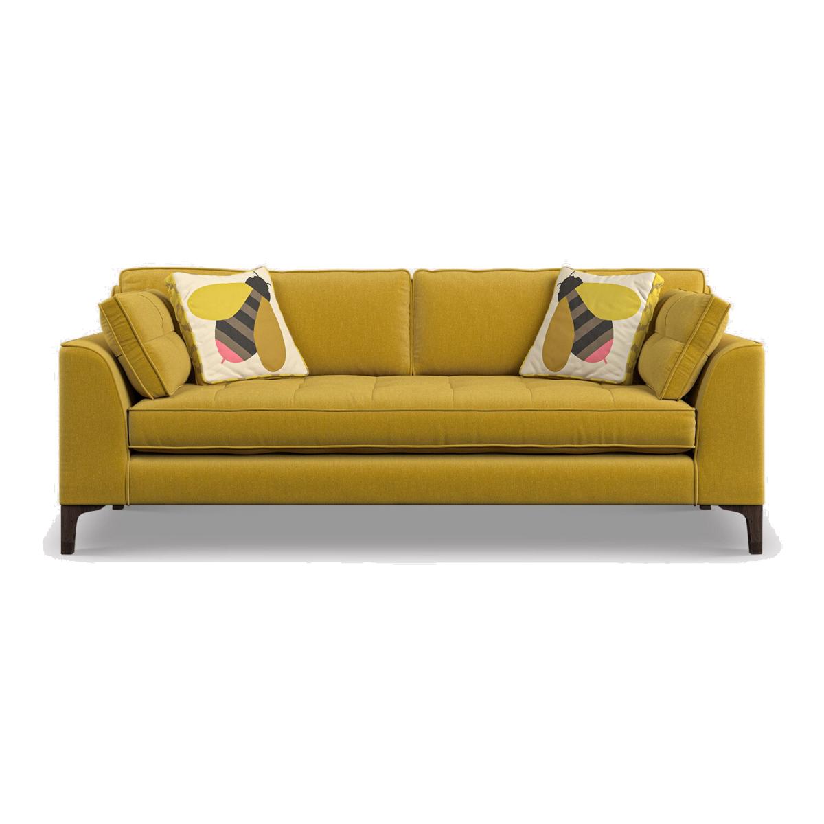I love this sofa for its bold, retro-inspired design and vibrant colour, making it a real statement piece. It works particularly well in contemporary or eclectic interiors where it can add a splash of colour and personality. To style it effectively, consider pairing it with neutral curtains and rugs to let the yellow pop, or mix with patterned cushions and throws for a layered look. Its generous size makes it practical for family living or entertaining, while the clean lines and fabric choice keep it easily manageable in daily use. Overall, it’s a versatile addition that can brighten up both modern and more playful spaces.