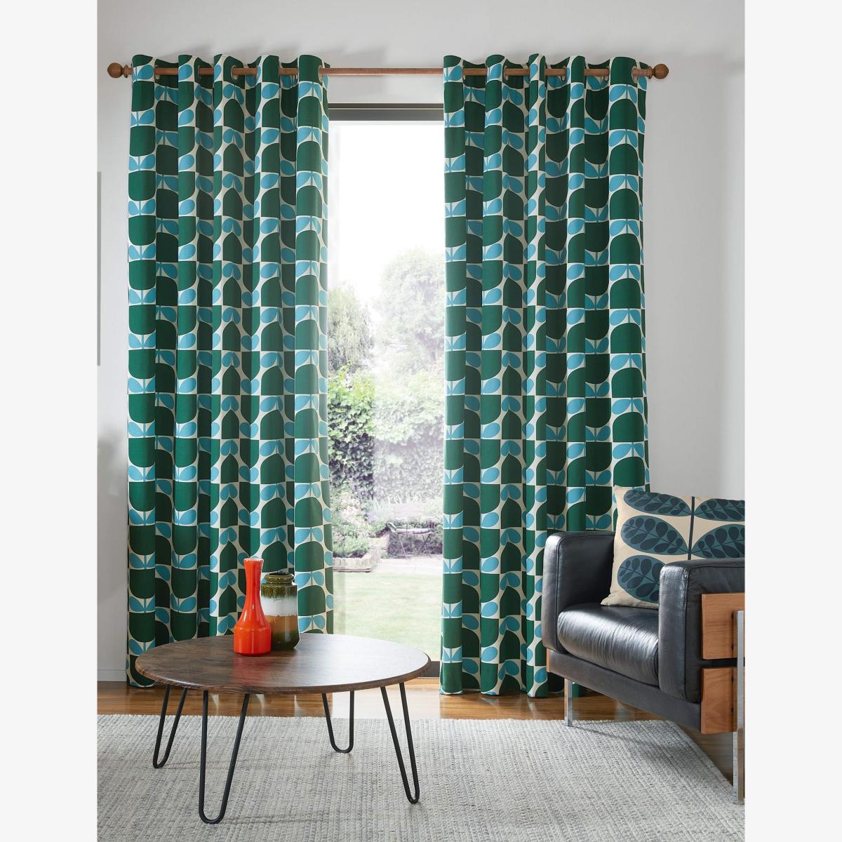 Orla Kiely Block Stem Pure Cotton Eyelet Curtains Green Mix